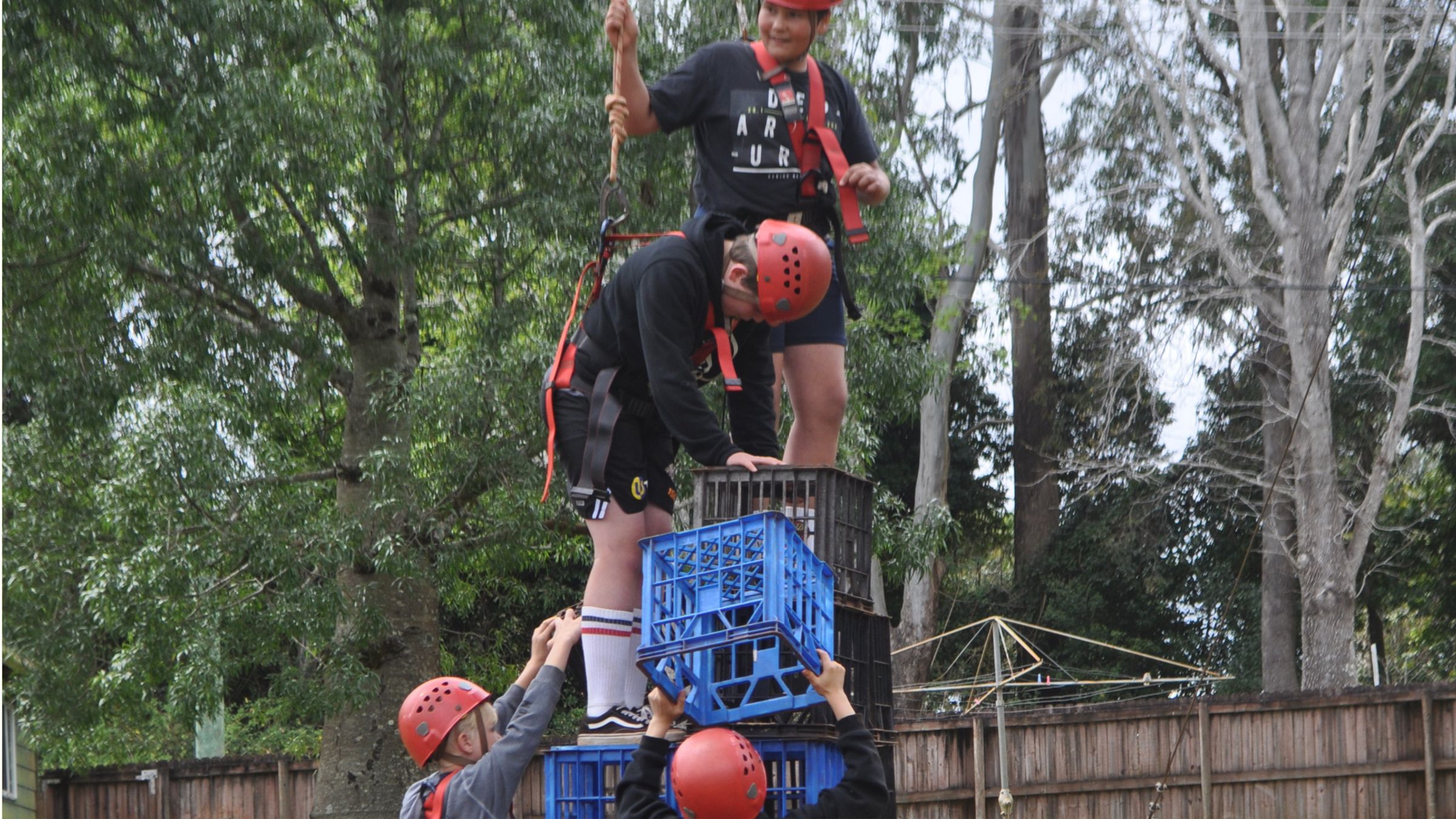 Thursday came and it was breakfast time then straight out to our first activity which was Mini Raft Building. Surprisingly, my group's raft won!! Then we had morning tea, after that we went to our second activity which was the Giant Swing! When it was my turn to go I was so nervous but I did it and it was amazing! After that it was lunch and we went to Crate Climb my partner was Maria we managed to get five crates but the record was seven. When afternoon tea was finished, we went canoeing and I was with Maria again! We played a game called canoe tag and a game called bad croc good croc they were both really fun!! The day was coming to an end time to get ready for dinner and Tribal Link. The dreamtime stories were very interesting and exciting to listen to by the fire after the stories we got to drink some homemade lemon myrtle tea, it was so good!