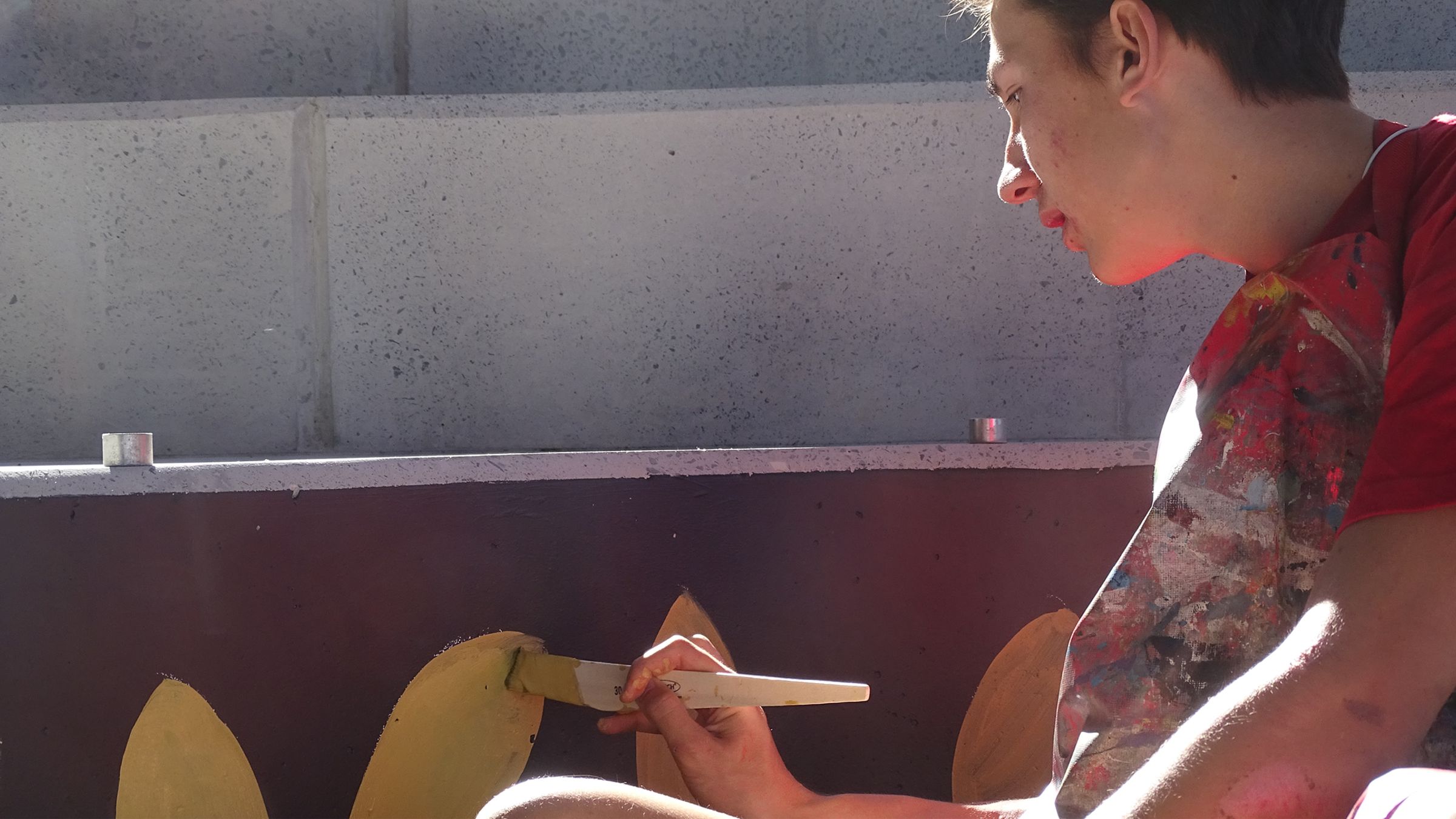 Over the recent long weekend, local indigenous and established artist, Ms Narelle Urquhart and her daughter, Jessica, collaborated with four Art Committee students and facilitated by Mr Walker to complete a reconciliation project in the new yarning circle under the new Aitkenhead Building.