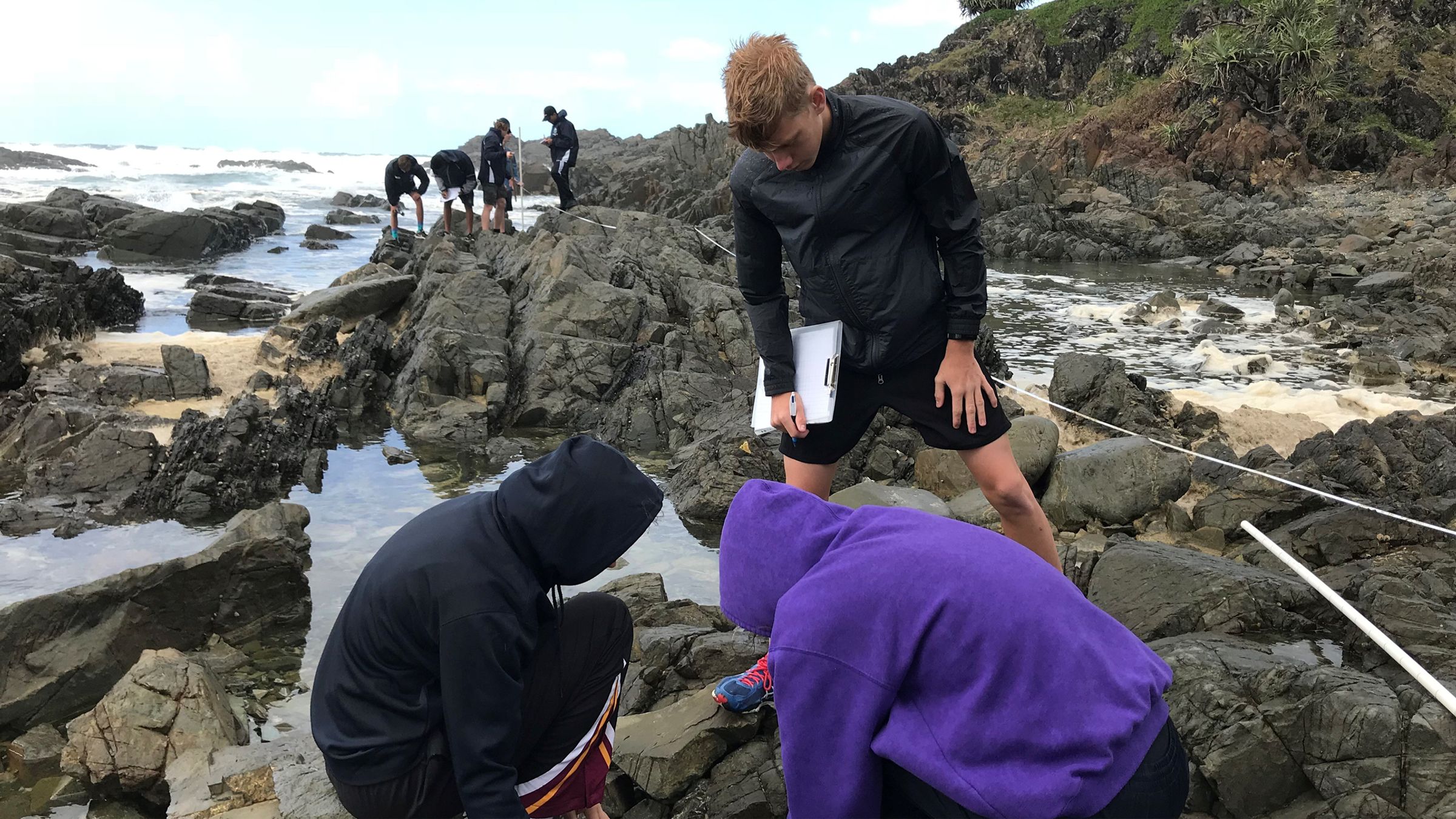 Year 11 OP and IB Biology students embarked on an excursion to Hasting’s Point in Week 8. Despite an early downpour shorty after our arrival, the weather, although extremely windy, managed to hold off enough for all students to collect relevant data.