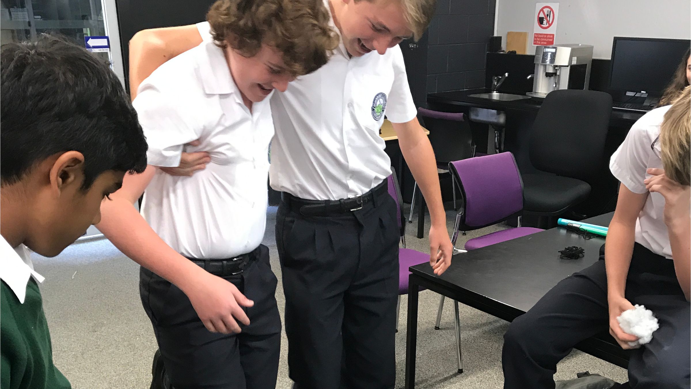 We worked with a group called Engineers Without Borders who work with communities in developing countries. They use design thinking and their engineering skills, to identify and solve real life problems in these communities. The workshop we completed with Engineers Without Borders was based around biomedical engineering. It involved creating a prosthetic leg with the materials they gave us. We then had to attach this limb to a group member and try to walk two to four metres. This task turned out to be much more of a challenge than we initially thought. Another workshop involved cracking the codes of small colour sensor robots, Ozobots. The Ozobots changed their behaviours depending on the colour they detected with their sensors. For example, if the robot sensed green and red together it would do a 360-degree turn. The final workshop that we visited was about Chemical Engineering. We were challenged to make the ‘Perfect Cocktail’. We mixed ice and water to create a mixture that had a volume of 550ml and had a temperature of -5 degrees Celsius. That’s below freezing point! For each degree and ml our Perfect Cocktail was out, our teams were deducted points. To conclude our visit at UQ we were given a tour of the campus and learnt about the life of a university student. The student ambassadors who were our tour guides for the day were really helpful – plus they gave us goodie bags before we left! Thanks, UQ.