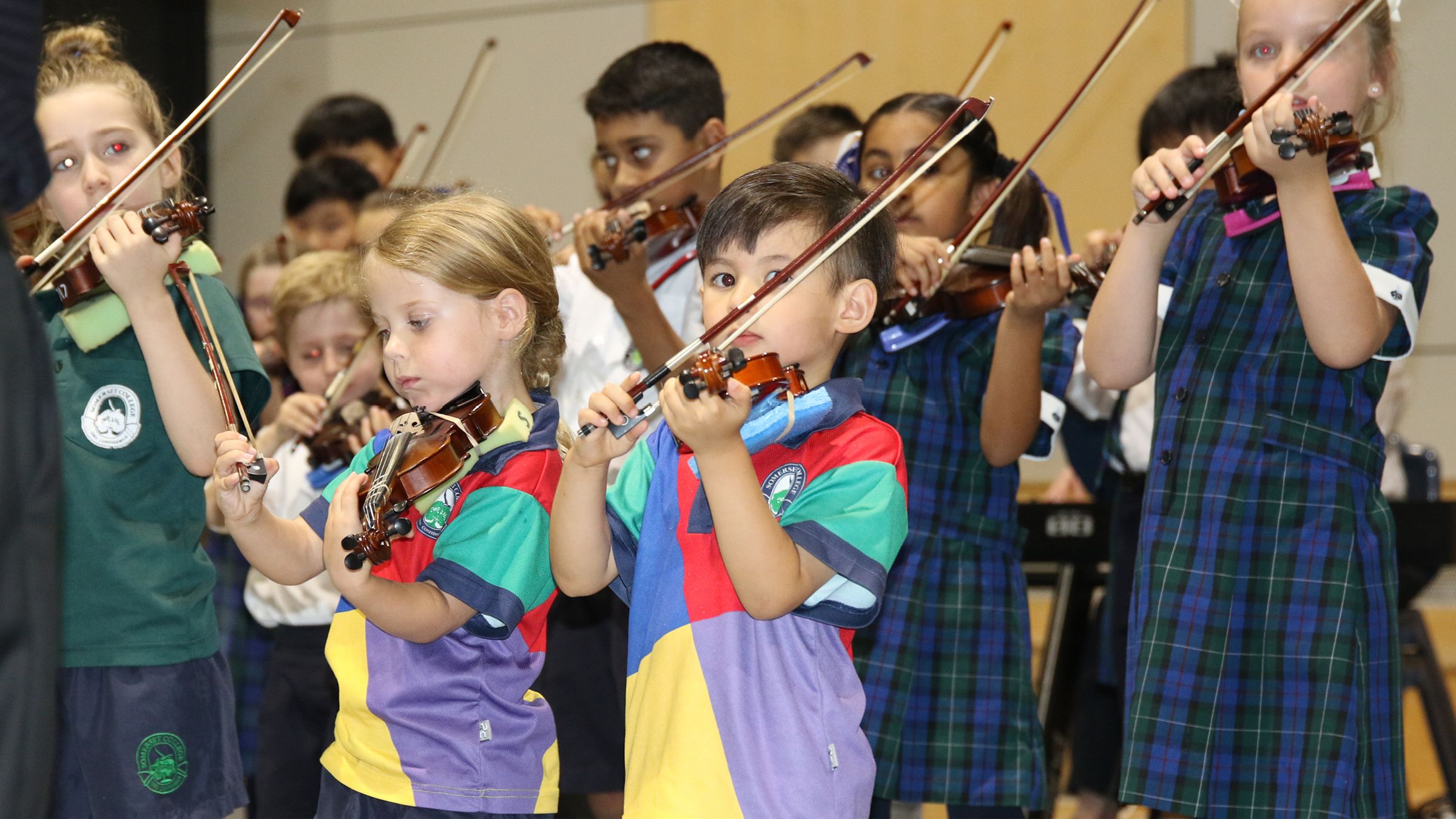 Showcase is always an inspirational evening, as students from pre-prep to year 6 have the opportunity to shine and express themselves, and to share their love of music. This semester’s performance was held in the Basketball Courts in the Spartan Gym, due to the renovations in the Performing Arts Theatre. The evening also used a new format, with rotations of three groups at a time. Many teachers, parents and students commented that the courts provided good acoustics, and that the venue provided a good opportunity for the students to watch their peers.
