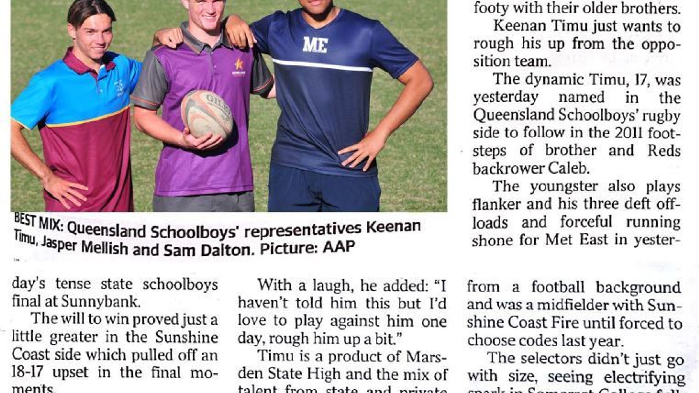 Somerset's Rugby Captain Sam Dalton is marking his mark on the field as a Queensland Schoolboys' representative. See the article below written by Jim Tucker as published in The Courier Mail.
