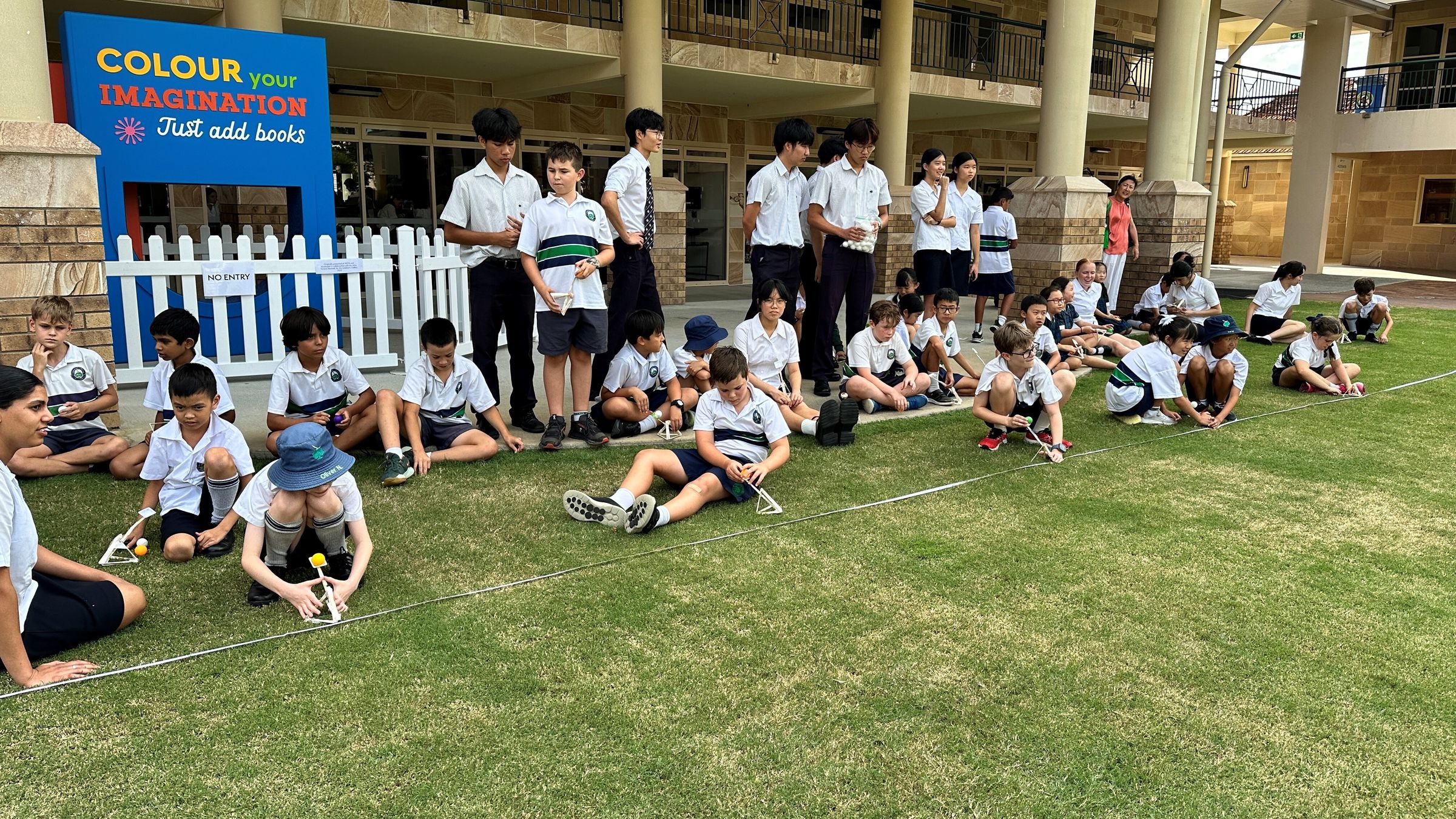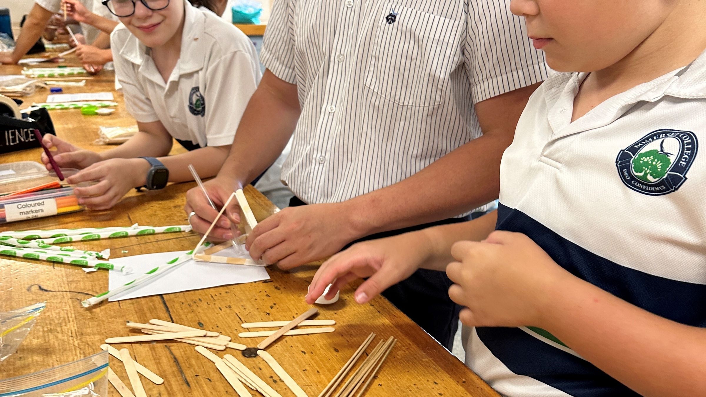 In Week 1, we measured how far a ping pong ball could fly using triangle catapults built out of paddle pop sticks and rubber bands. It was an incredibly fun, and memorable afternoon that still explored the physics aspect of energy transformation from elastic energy in the rubber bands to kinetic energy.