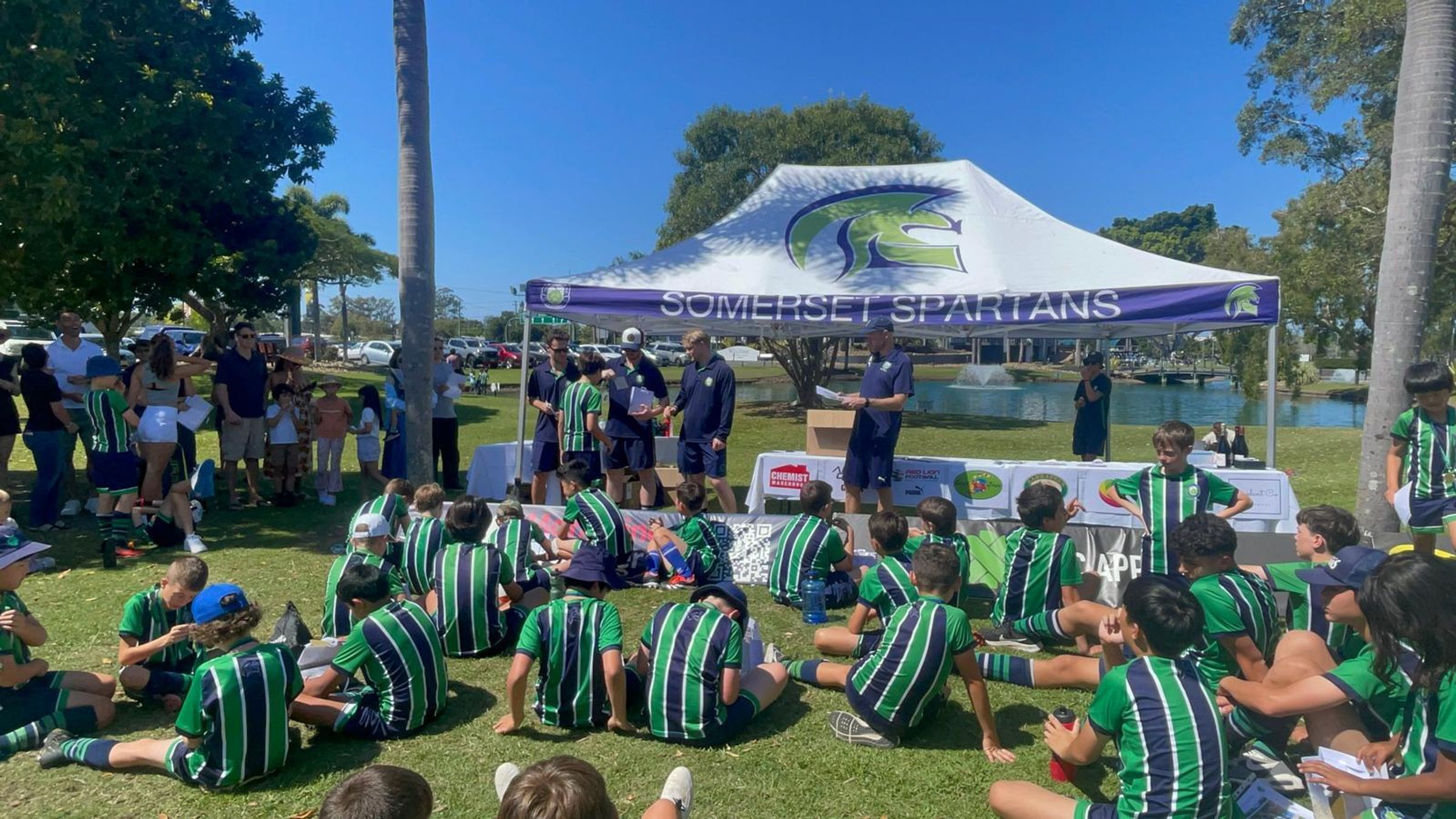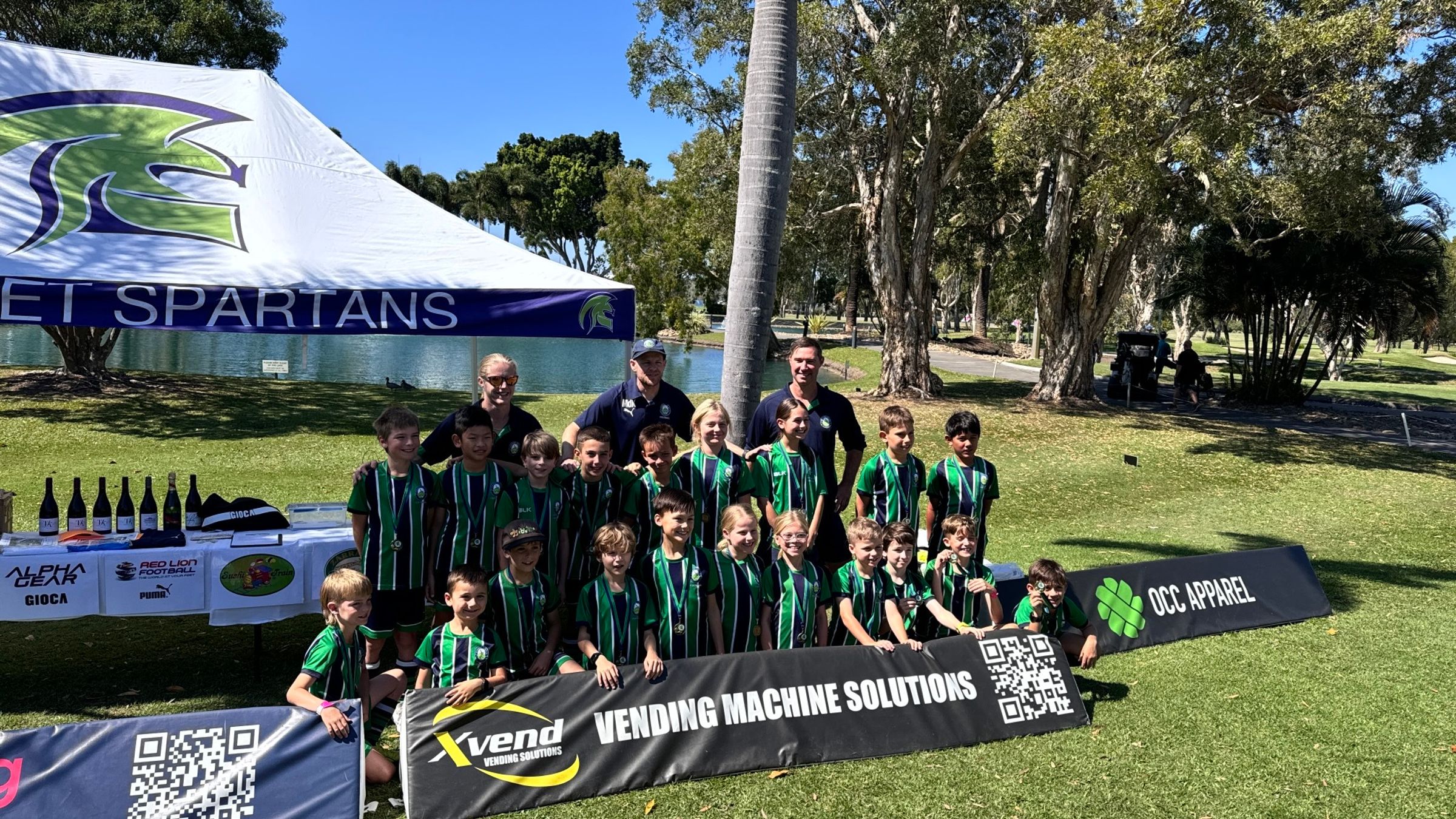 Presentation Day was held at the GOALS facility, starting with the youngest Spartans and ending with the oldest. Each player received a team photo, keyring, sticker, and medal. The day ended with 5-a-side football and a raffle, with thanks to sponsors like Mai Plant Co, Deja Vu Wine Co, and more.