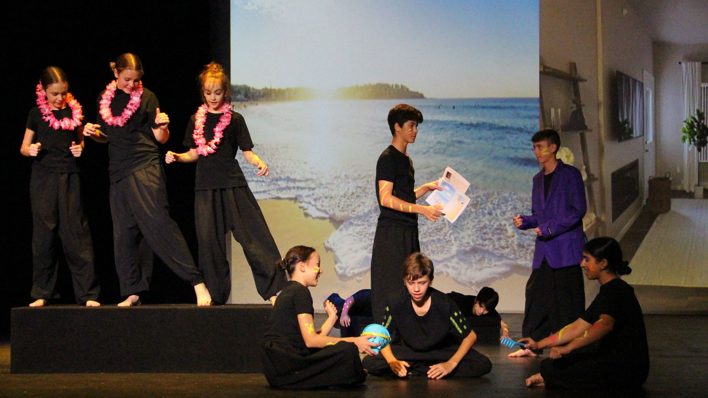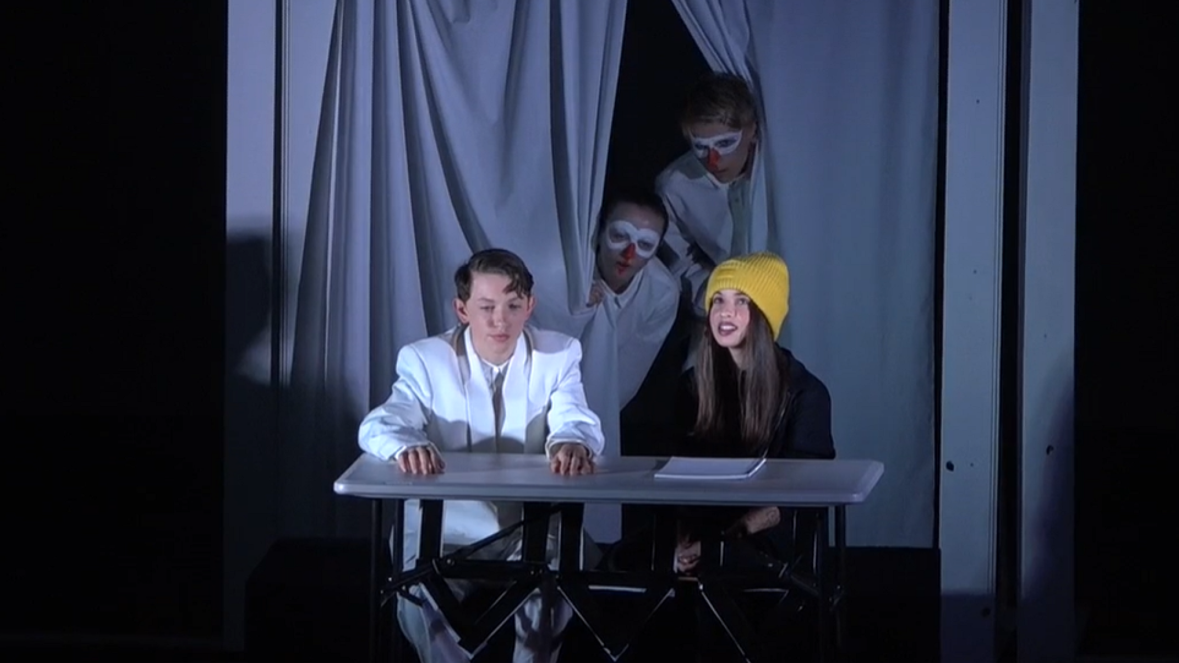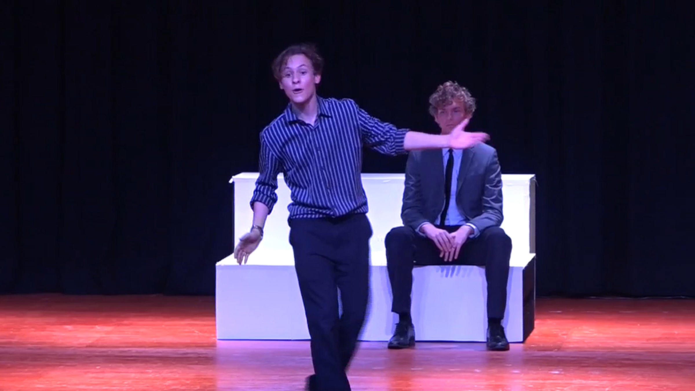 The final week of the festival was the Senior Section, hosted by Saint Stephen's College. Chasing the Whale by Matthew Ryan was directed by Ms Josephine Flynn, assisted with technical design by Mr Sam Cash. Our amazing Senior cast of Eva Wingrove, Calvin Walther, Soumia Lamont, Daniel Harvey and Jess Kirk found the rhythm of the work and were commended on their precision of timing and sophisticated design elements.