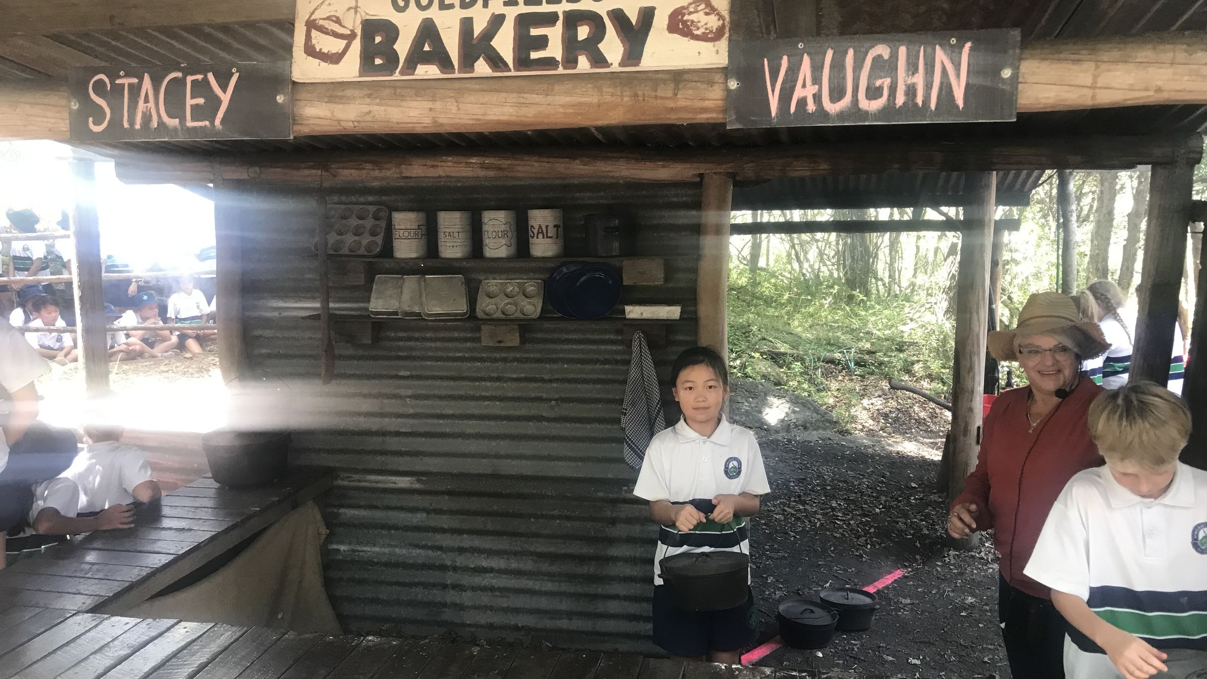 The Year 5 gold rush experience was amazing! We were greeted by a trooper (a police officer on horseback), and he sent us down to a station where a lady stole Evie Ladbrook’s tomatoes! There were so many fun activities to do, such as, panning for gold, roleplaying, tent making, bargaining at the general store, and searching for bush rangers. As we were walking around, we saw bakeries, tents and more with some of our names on them!