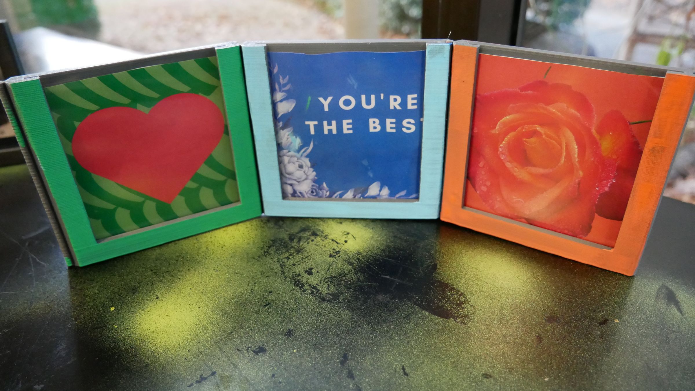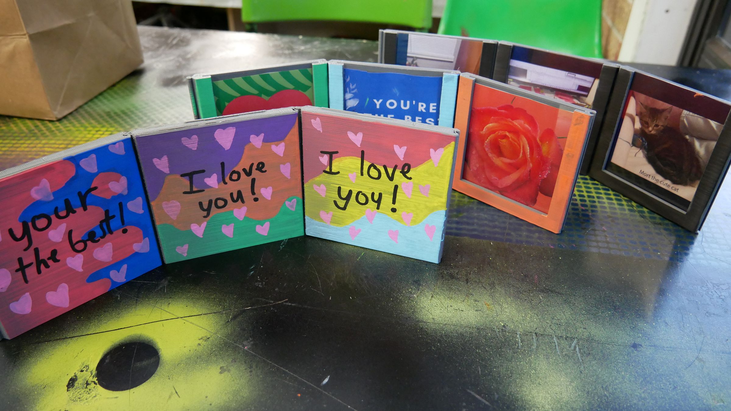 These frames were then painted and populated with art and messages from the heart.
