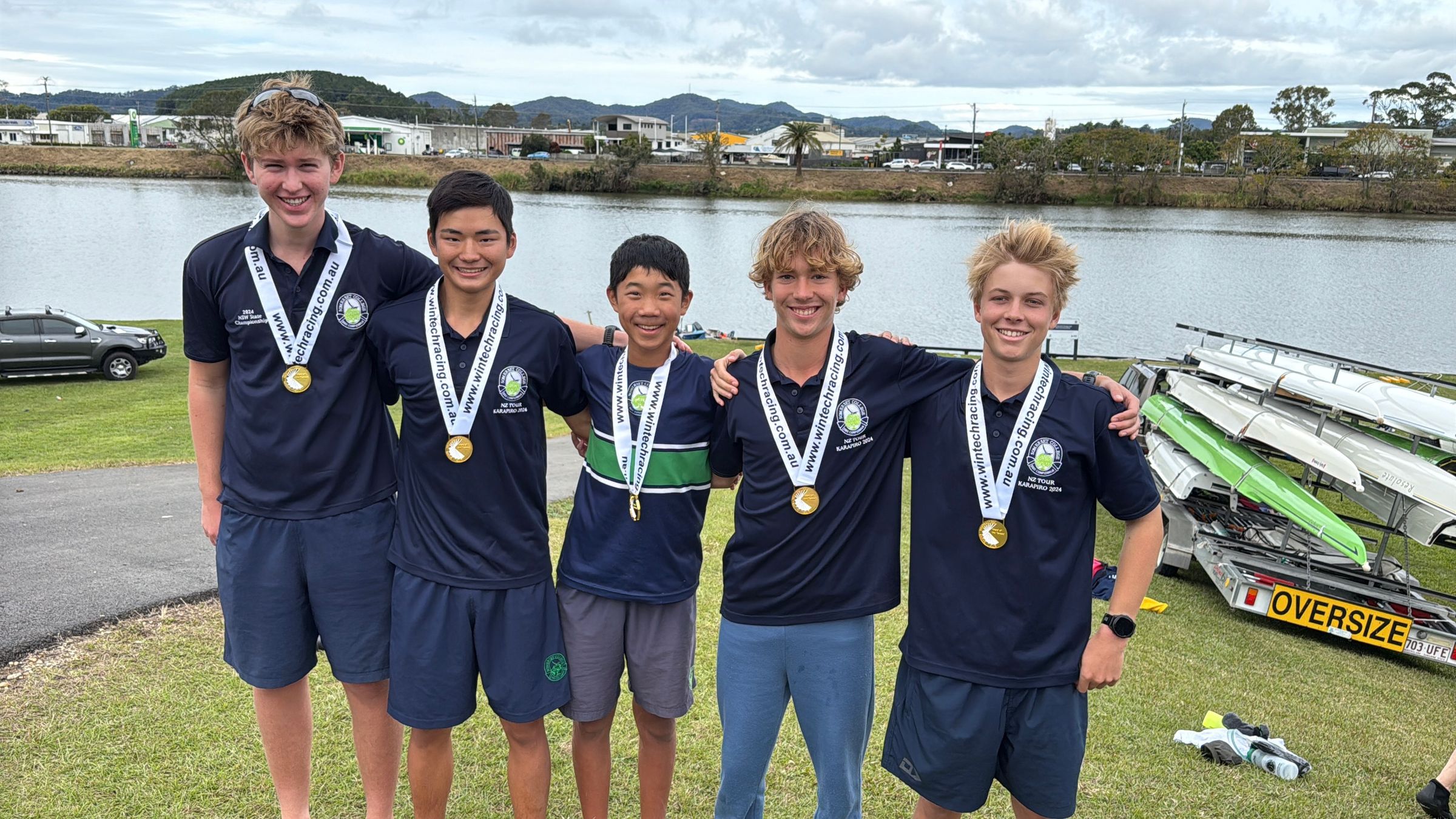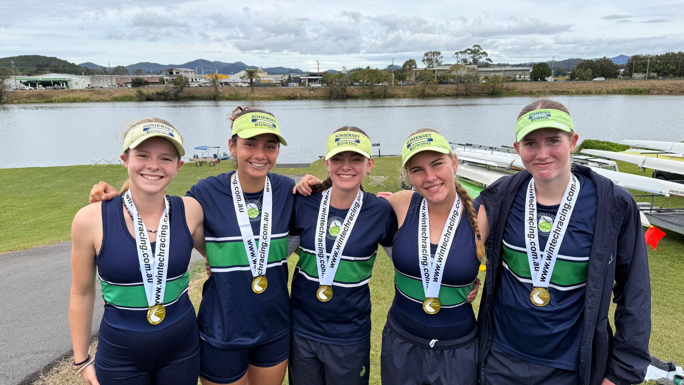 Halfway in, with 10.5km down, we were feeling the pain, but in a good way. The fatigue was getting to us and each crew came up with a different strategy to combat it. The boys double, Ethan and Ed, had a lead so great, they decided to both stop for a water break, for about 2 minutes. Whereas the boys’ quad, comprising Byron, Marcus, Luke, Will, and their cox, Elijah, stopped individually, but not for too long, to ensure their lead remained strong. The girls on the other hand, Tamar, Alanja, Brooke, our cox Zoe, and I, stopped in pairs for 10 strokes each.