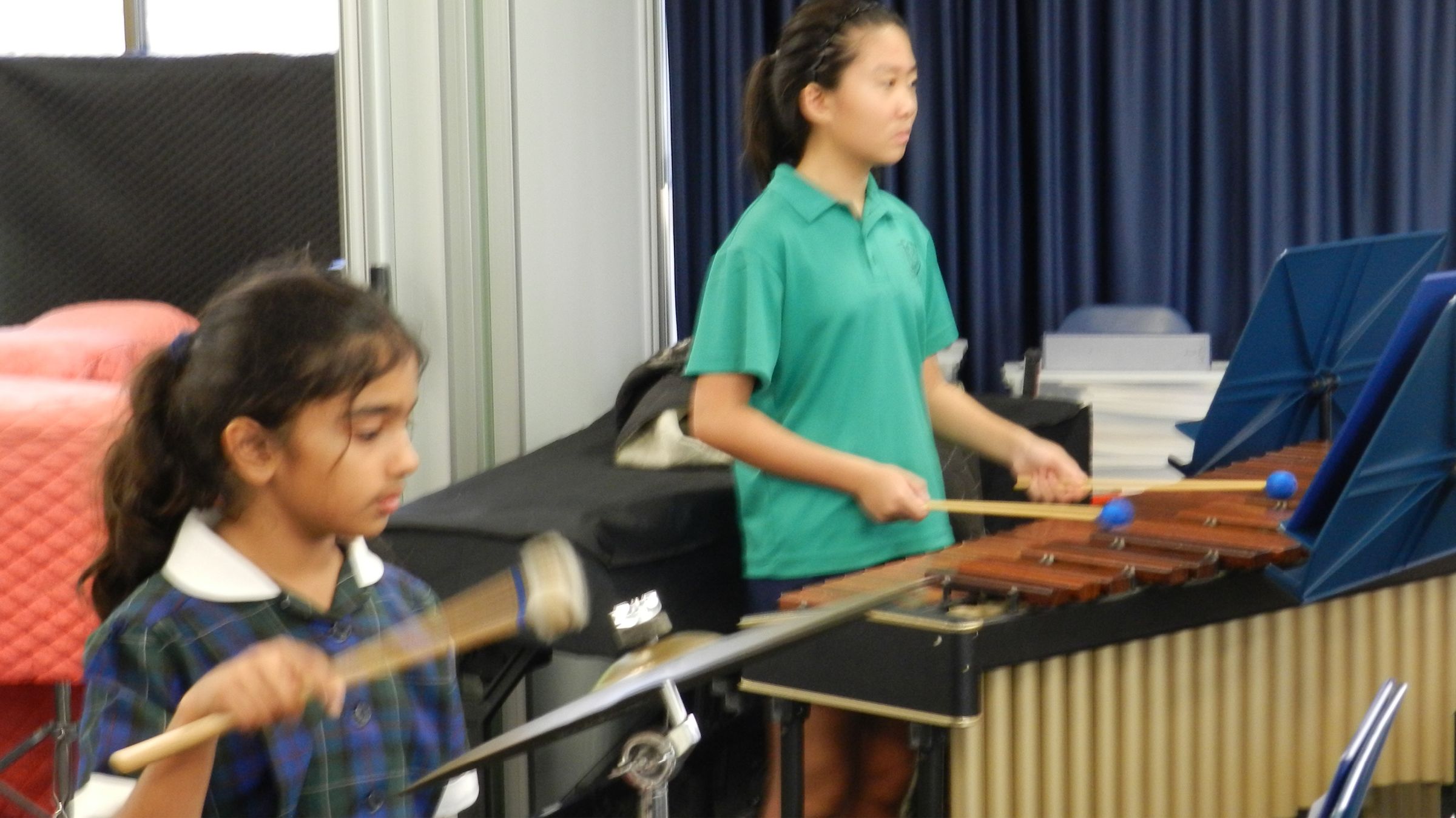 Hello, I’m Alana from Junior Band and I play percussion instruments. From my experience, it’s a lot of fun! I really like percussion because instead of staying on one instrument, you get a variety of instruments to play on, and you will not get bored.