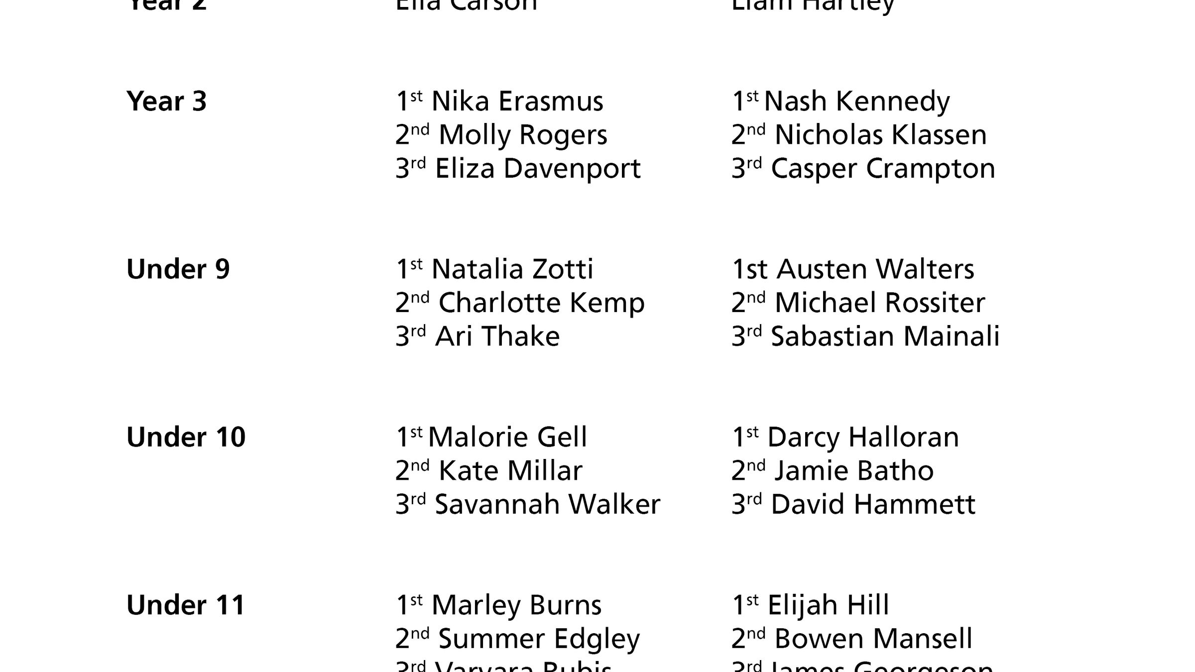 Well done to the following students who placed on the day: