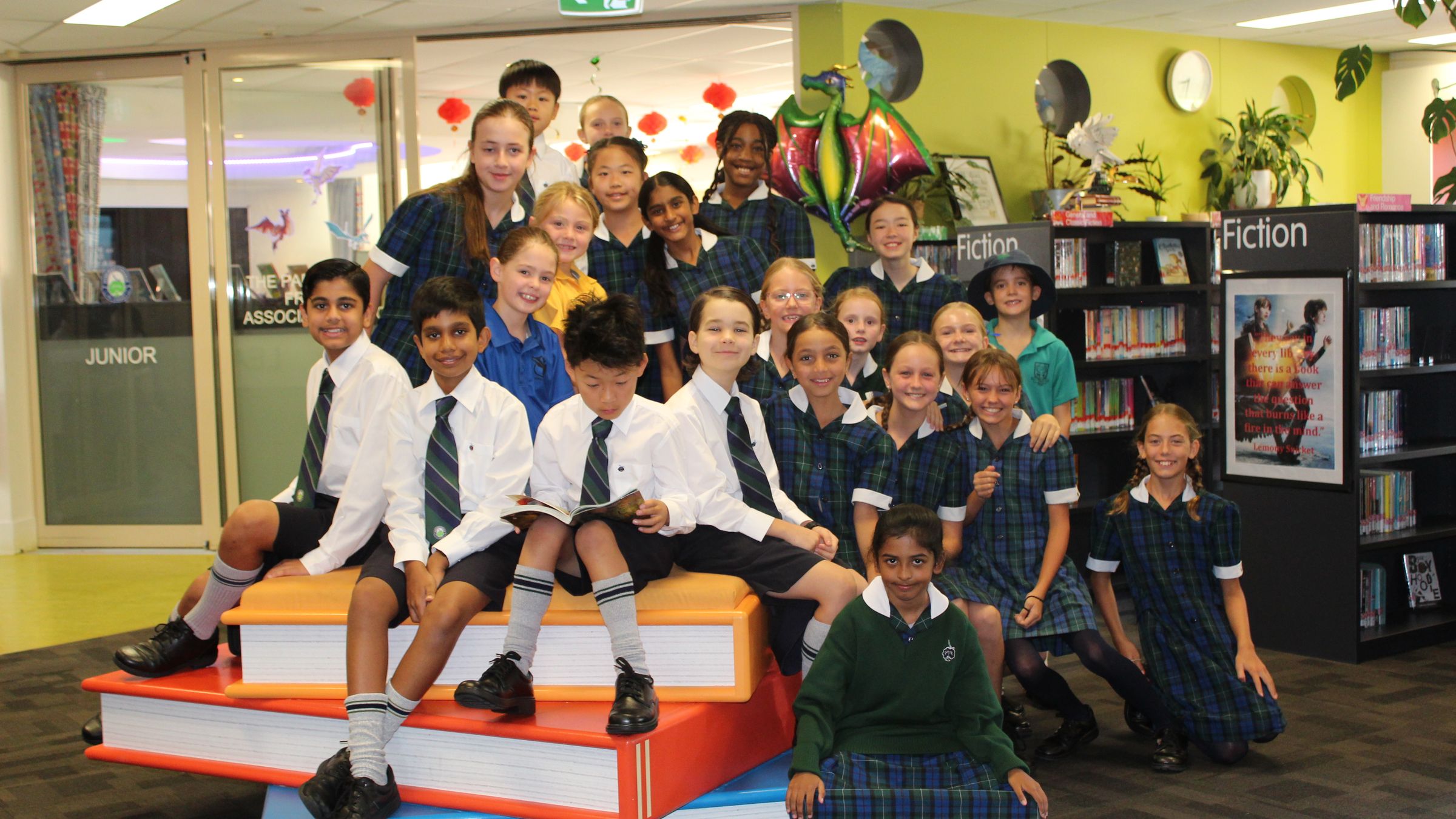 This Library Lover’s Day we encourage students of all ages to sprawl out, curl up, and lose themselves in the magic of words in reading nooks and spaces, be that at home or in the KIP. Our latest Young Adult space provides a quiet and cozy nook for older students and the many pillows in reading pods provide other welcoming spaces. Our new art installation by alumni artist Victoria Reichelt (Class of 1996) has provided a popular space as well for students. This art piece is fresh from the HOTA Children’s Gallery exhibit on reading, Colour Your Imagination.