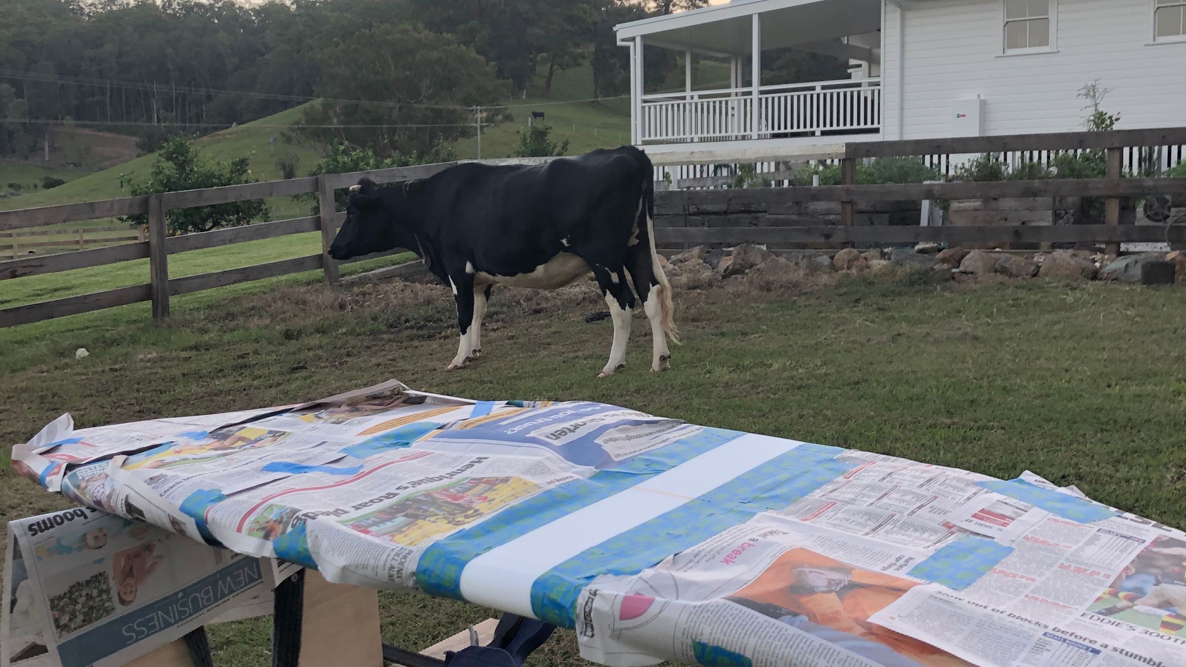 Unfortunately in recent weeks whenever I have had the time to be painting and glassing the board, it has been raining. Wet weather is an issue because I need to spray paint and glass the board outside to minimise the toxic chemicals I am surrounded by and I am going to use a catalyst in the resin that makes it only set when it is exposed to sunlight giving me extra time to perfect the glassing stage. I have now started the painting stage and have completed one of the four colours I need to paint.