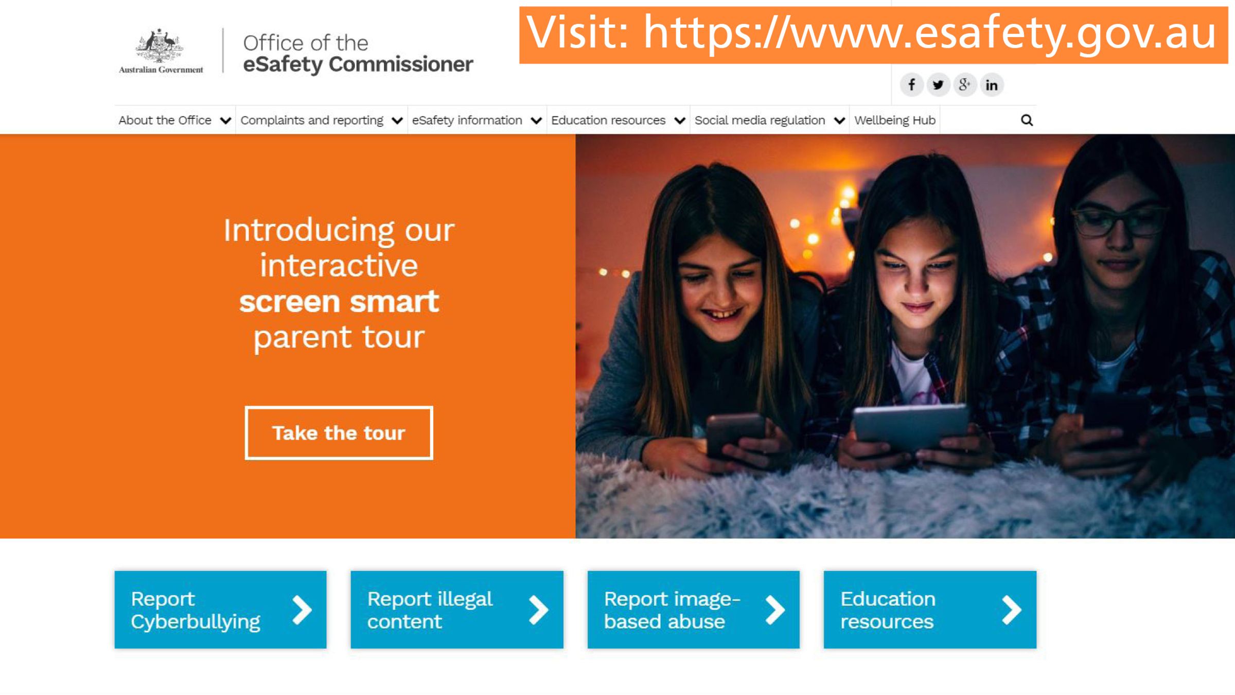 The website https://esafety.gov.au for the Office of the eSafety Commissioner is a recommended read for all parents, covering everything from keeping up to date with apps, learning more about some of the issues that children can face online to channels to report cyberbullying. One of the latest interactive tools that has been developed on the website, is the Screen Smart Parent Tour.