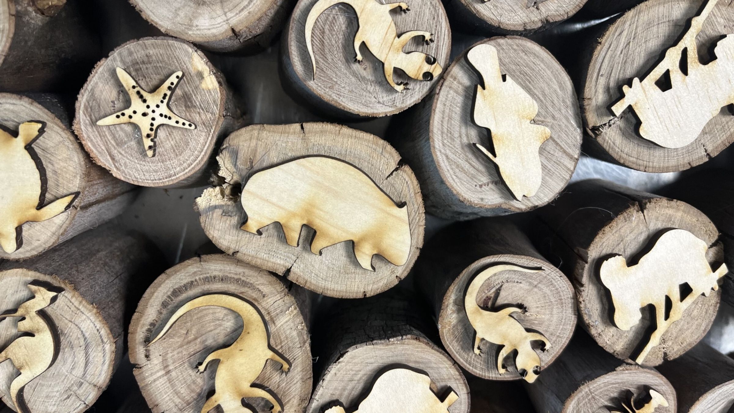 For my product I have created roughly 200 stamps of 30 different native endangered animals. I have gained and developed many new skills whilst making the stamps, these skills were how to use adobe illustrator, a laser cutter, and bandsaw. The stamps that I have made are 100% environmentally friendly as I recycled scraps pieces of plywood and used fallen branches from both at Quoll Headquarters and Currumbin from the storms that struck Southeast Queensland between Christmas and New Year as the contact point for the stamps to work effectively.