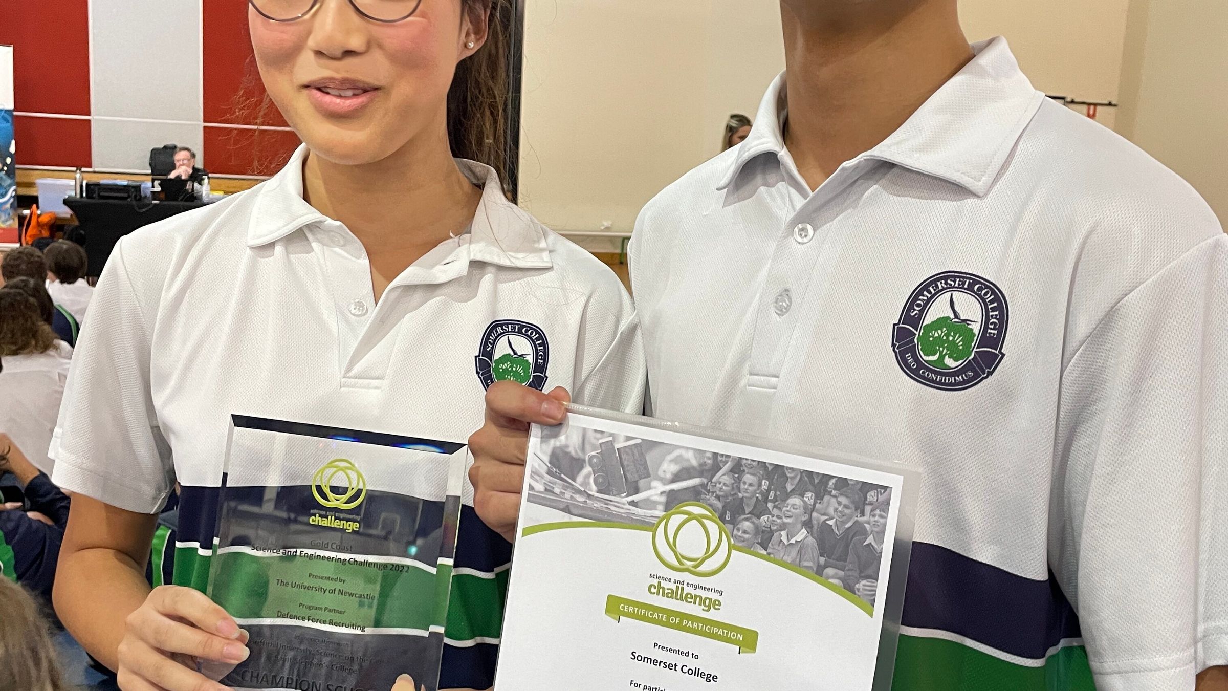 Each completed activity earnt points for the school’s team, with the day culminating in a competition of the strongest suspension bridge. Our bridge was the strongest of the day, withstanding a trolly weight of an incredible 4kg, putting Somerset on top of the points tally. We came away as the Science and Engineering Champions for South East Queensland for Day 1 of the Competition.