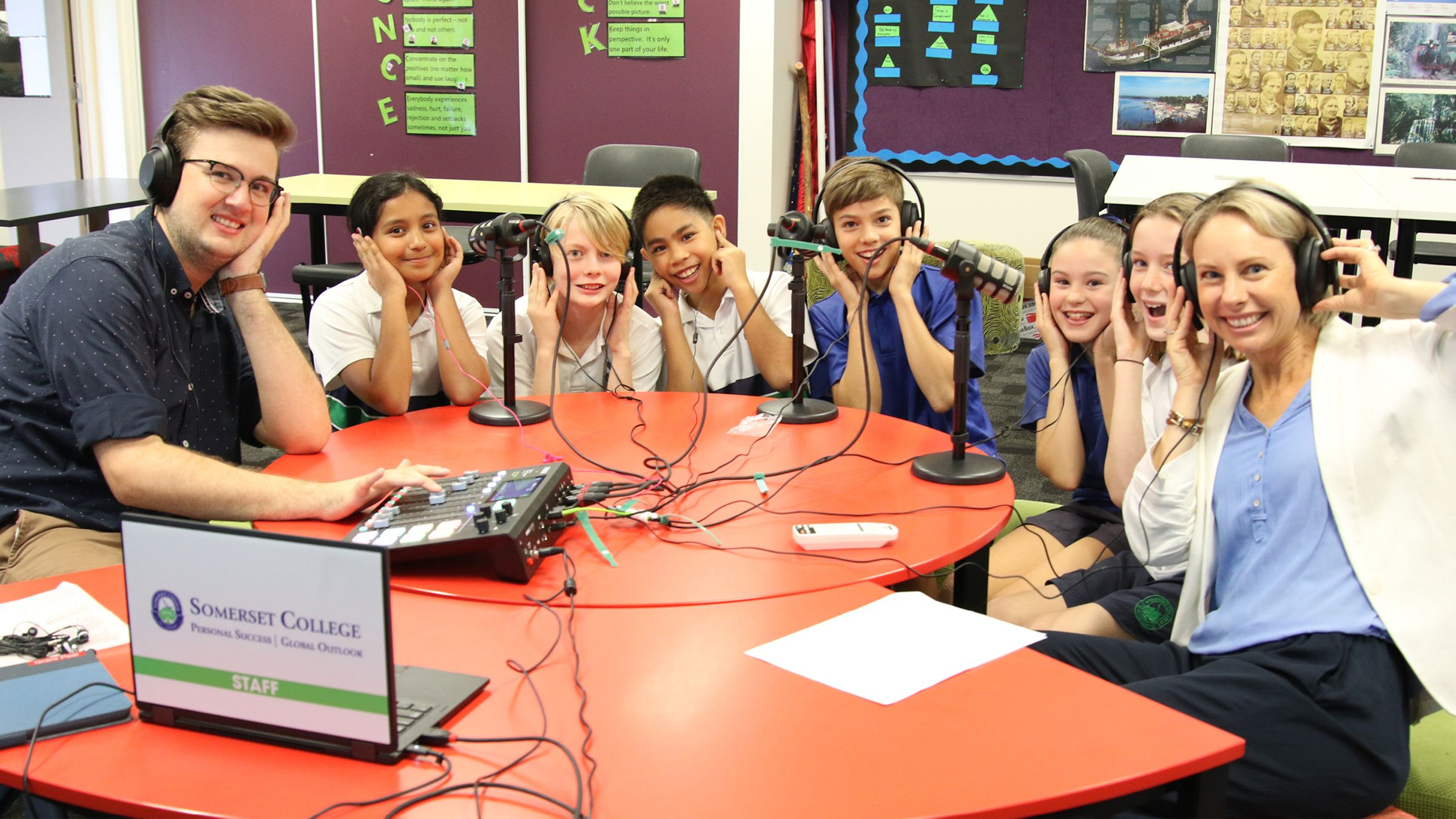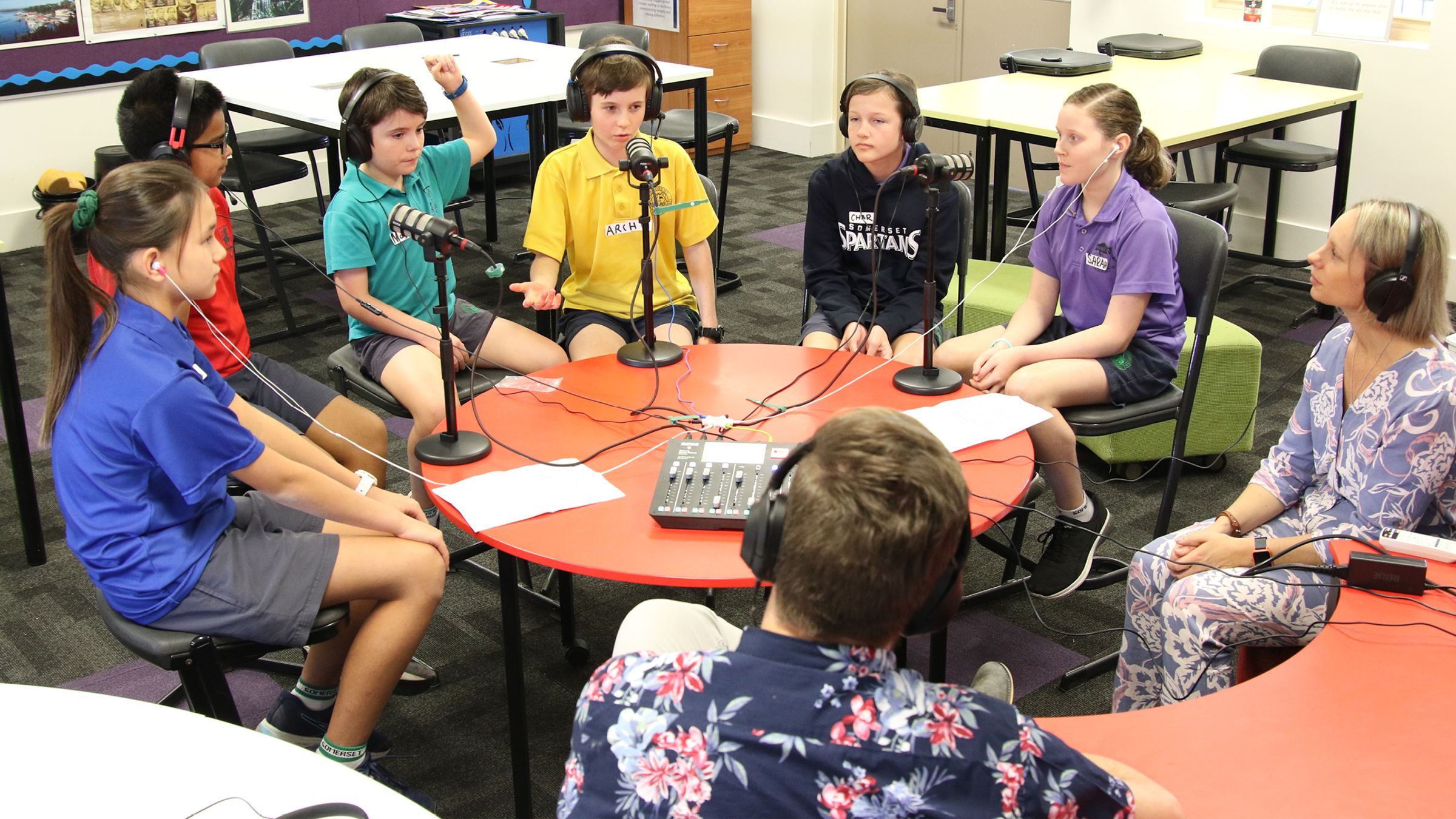 Short & Curly is a silly but serious ABC podcast, combining adventure, comedy and ethics for kids and families. Nerves were high as 12 of our Year 6 students entered their English classroom to see its transformation into a professional podcasting studio (thanks, Mr Peel).