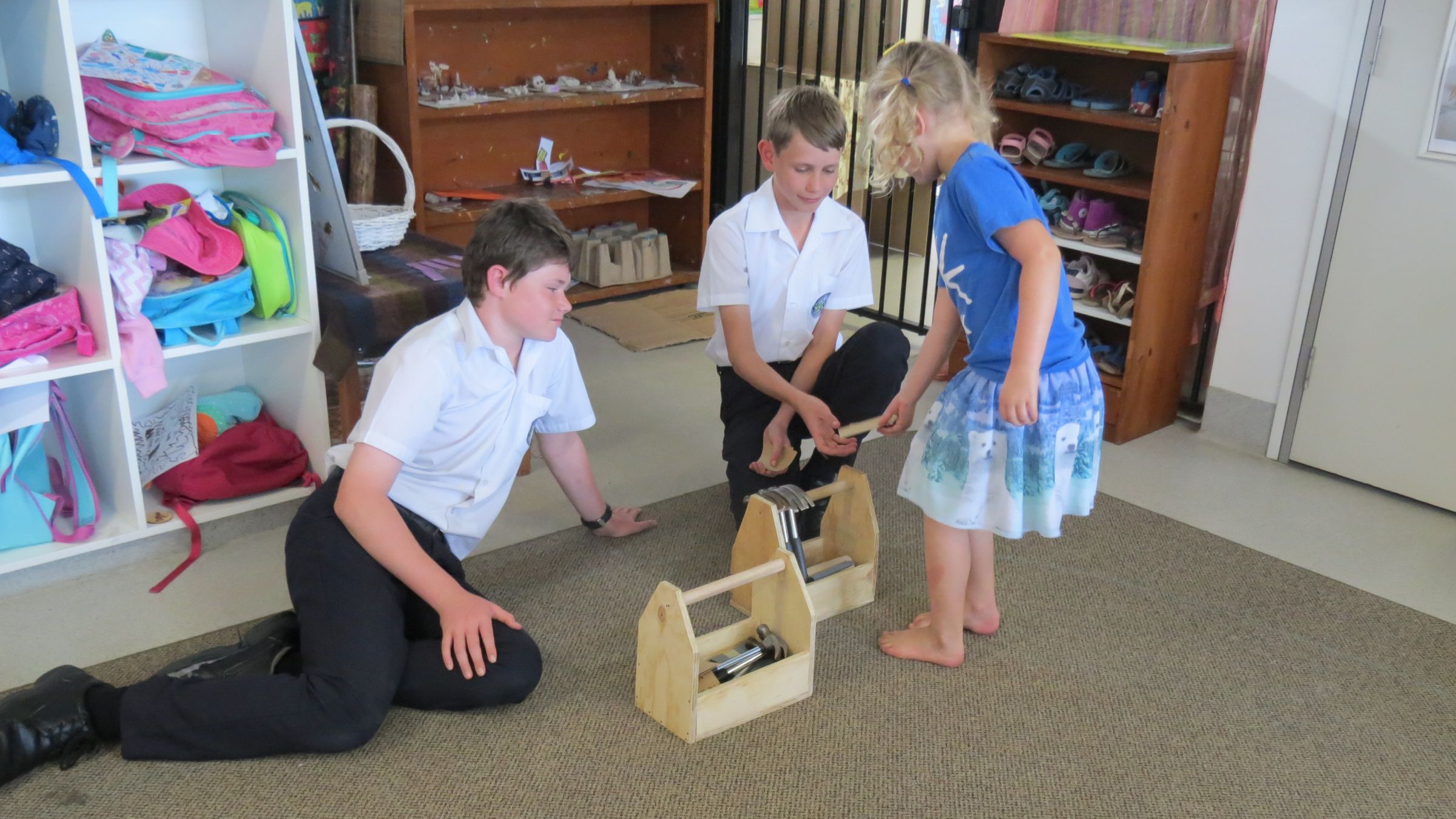We were fortunate enough to be able to deliver the toolboxes to the children at C & K Mudgeeraba in person. What an experience that was! The children were very excited by our visit and not only enjoyed playing with their new toolboxes but took the opportunity for some fun and games with all the students involved. We helped them build a rocket and then joined them in the playground, which was a great experience. I don’t know who had more fun, the children of C & K Mudgeeraba or the Somerset students.