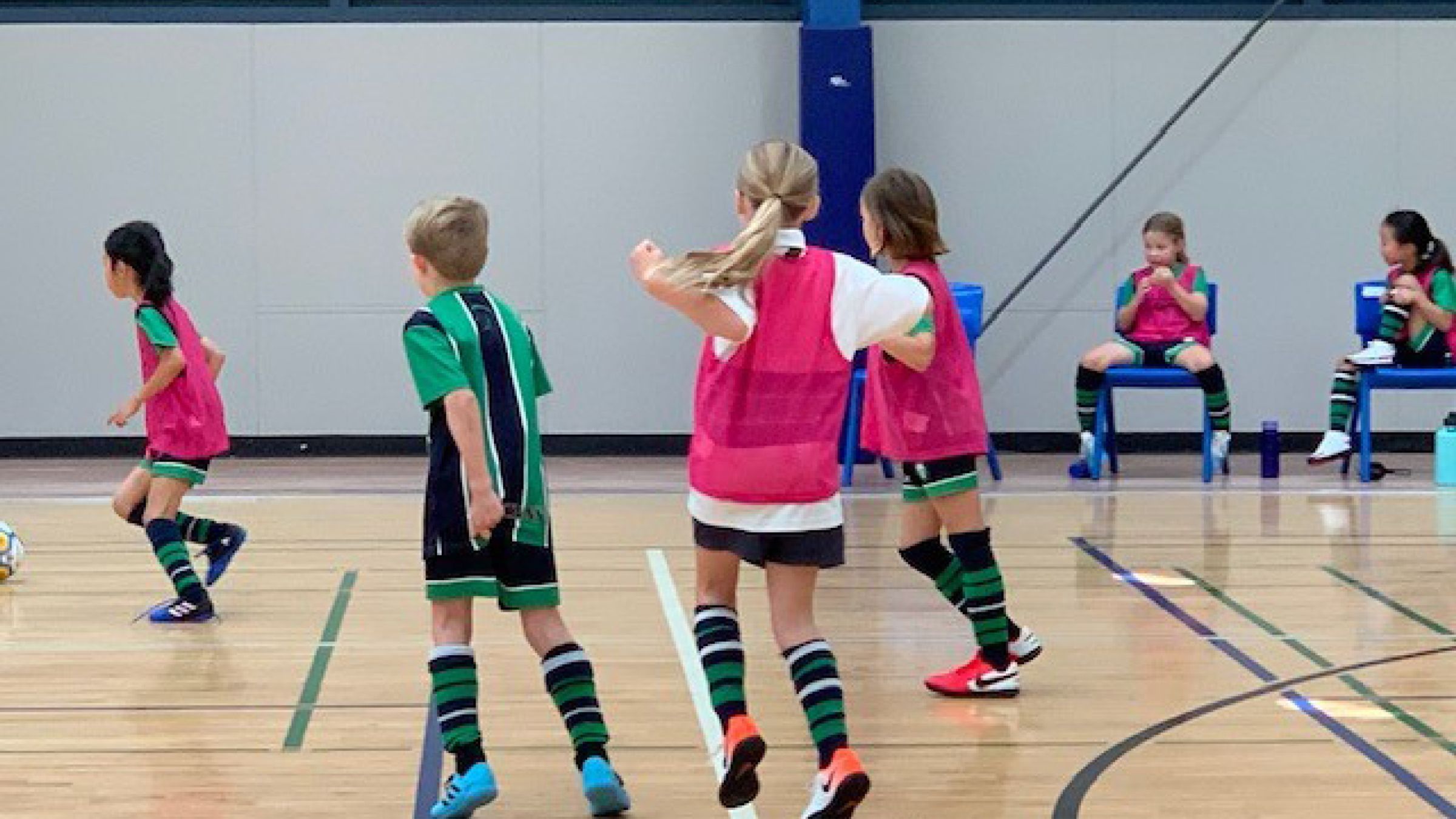 The Under 8 Blue existing of Boys from Year 2, while the girls are a combined team from Year 1, 2 and 3 students. The Blue side all played in the Futsal League in 2019 and because they have more experience were given a few playing restrictions. This made the game interesting to watch and all players could develop independently. The Blues won against the Pinks.