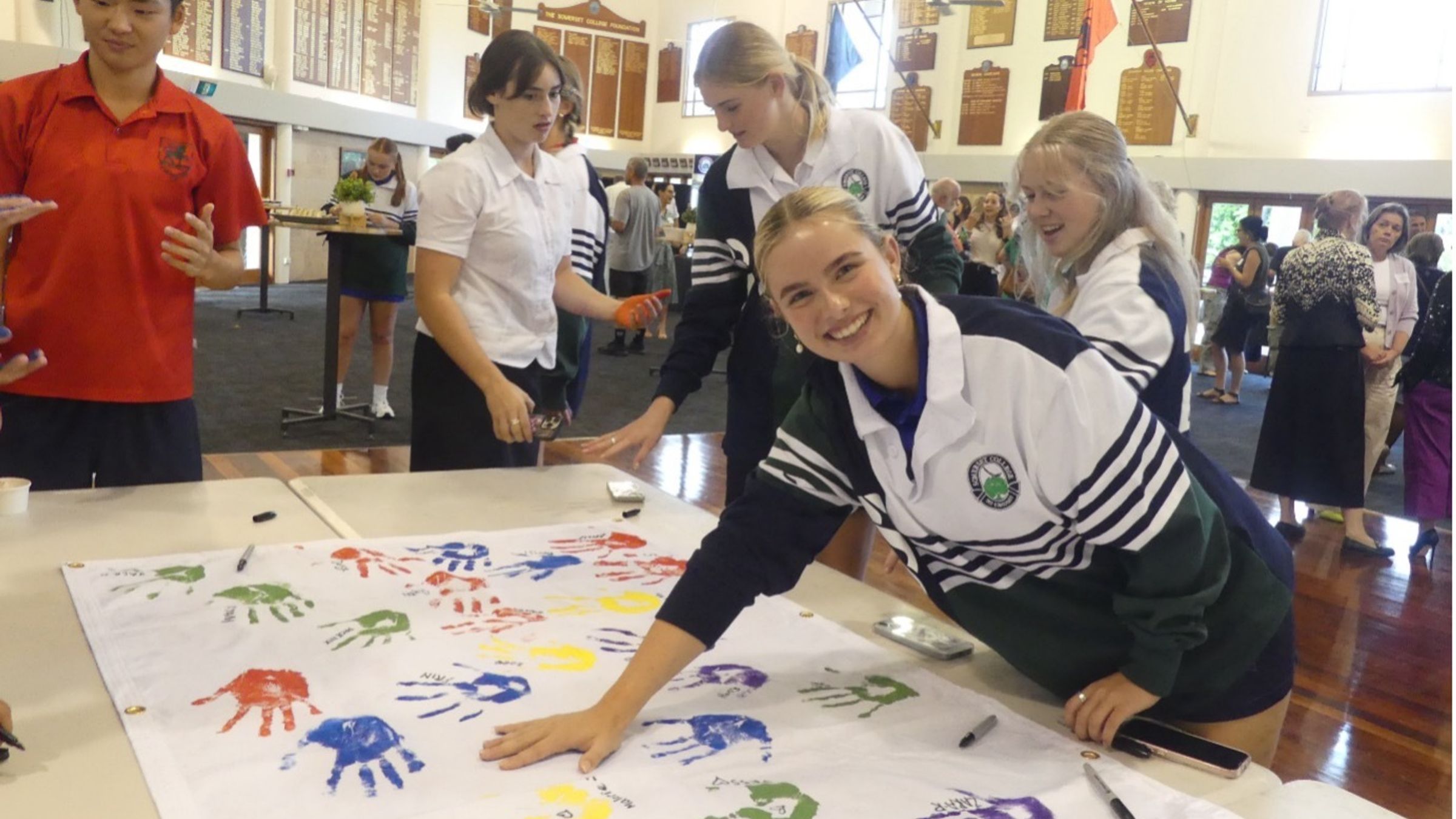 Thanks to the Alumni Association and Ms Lee, Year 12 started the year strong with a Welcome to Year 12 Function in the Great Hall. Joined by our parents and Year 12 teachers, we played guess who with our baby photos (including some staff photos!), indulged in delicious ice cream from a gelato cart and re-created our prep photos with Barry! The highlight activity, however, was the hand-print banner that will be on display in the common room all year, at our Avenue of Honour, and eventually our milestone Class of 2025 reunions. Each student put a handprint in their house colour paint, and signed their names, so now a rainbow reminder of our cohort welcomes us into the BLC each day. Another highlight was the CAPPY station where we all wrote notes on how we will maintain balance in times of stress. This will be a great help as we progress through the year and assessments and pressure ramp up.