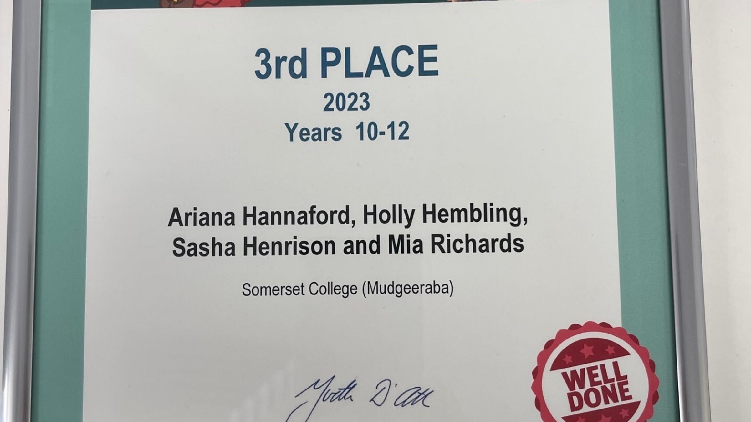 The competition consisted of 1,055 students from 33 schools across Queensland and out of 776 entries Ariana, Holly, Sasha and Mia achieved Third Place in the state.