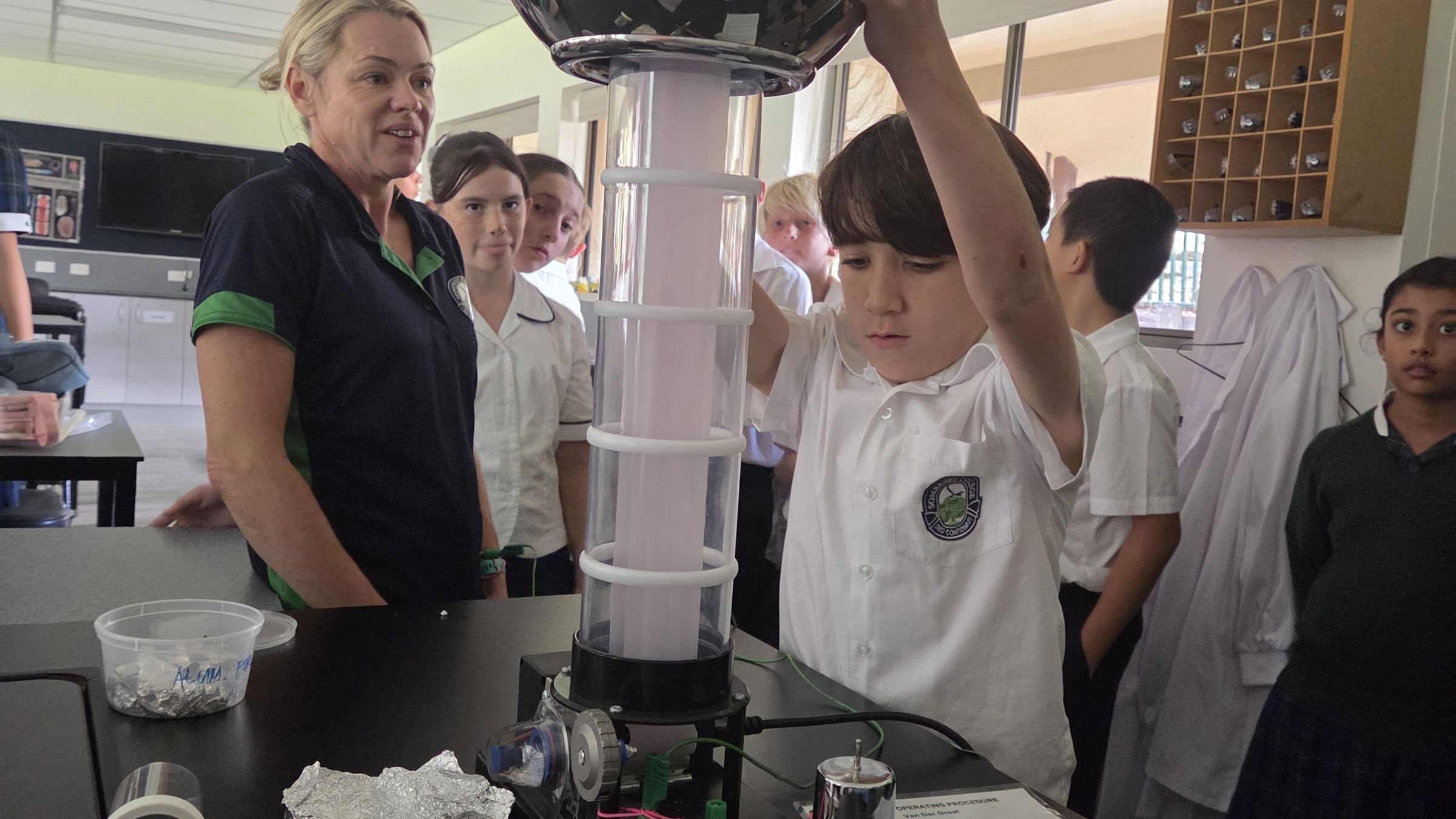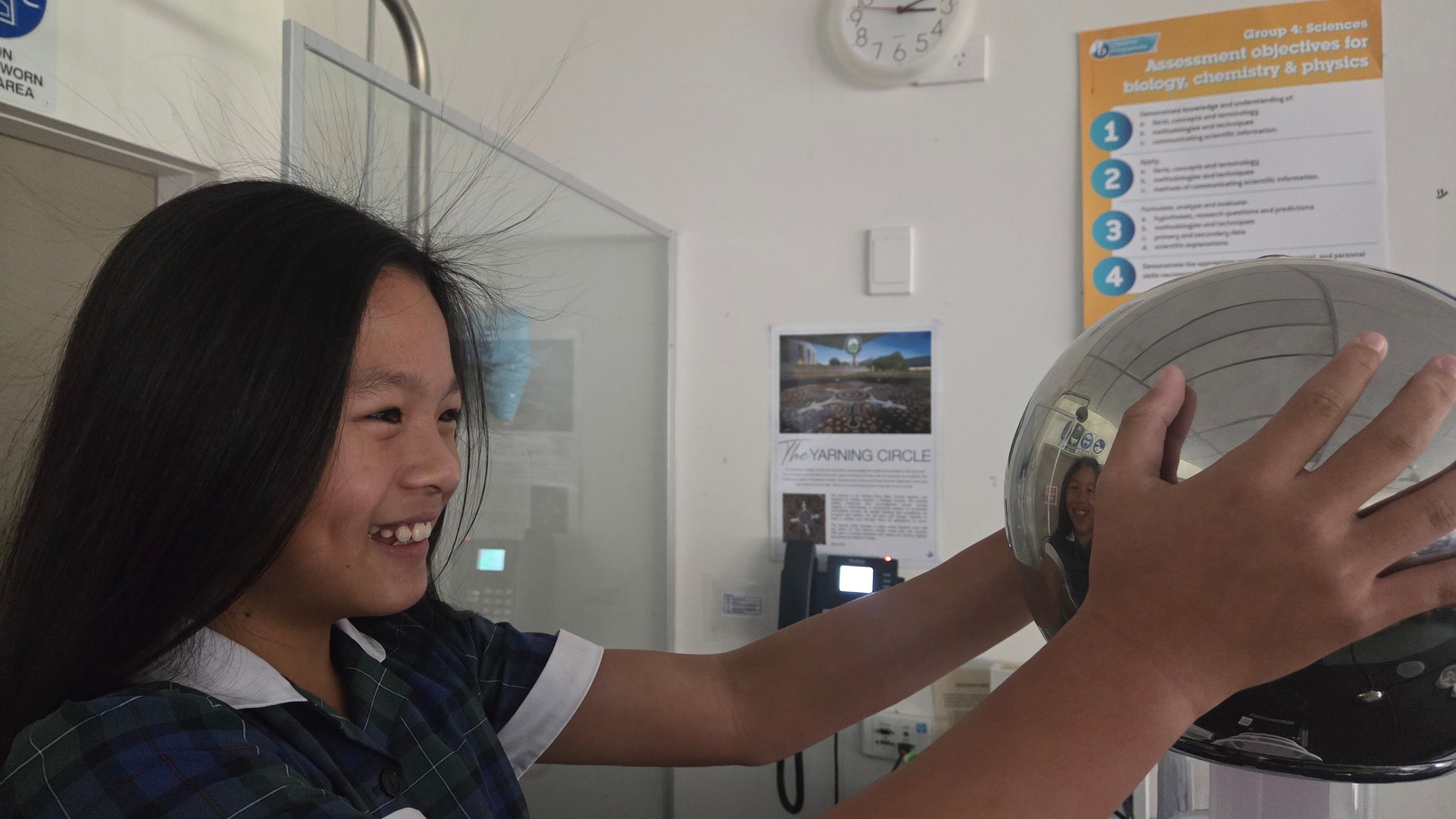 Next, the atmosphere crackled – quite literally – as students experienced "lightning" firsthand! With the Van de Graaff generator, they safely observed and learned about the principles of static electricity and electrical discharge, creating miniature sparks that lit up their understanding. Many found this to be a “hair-raising “experience!