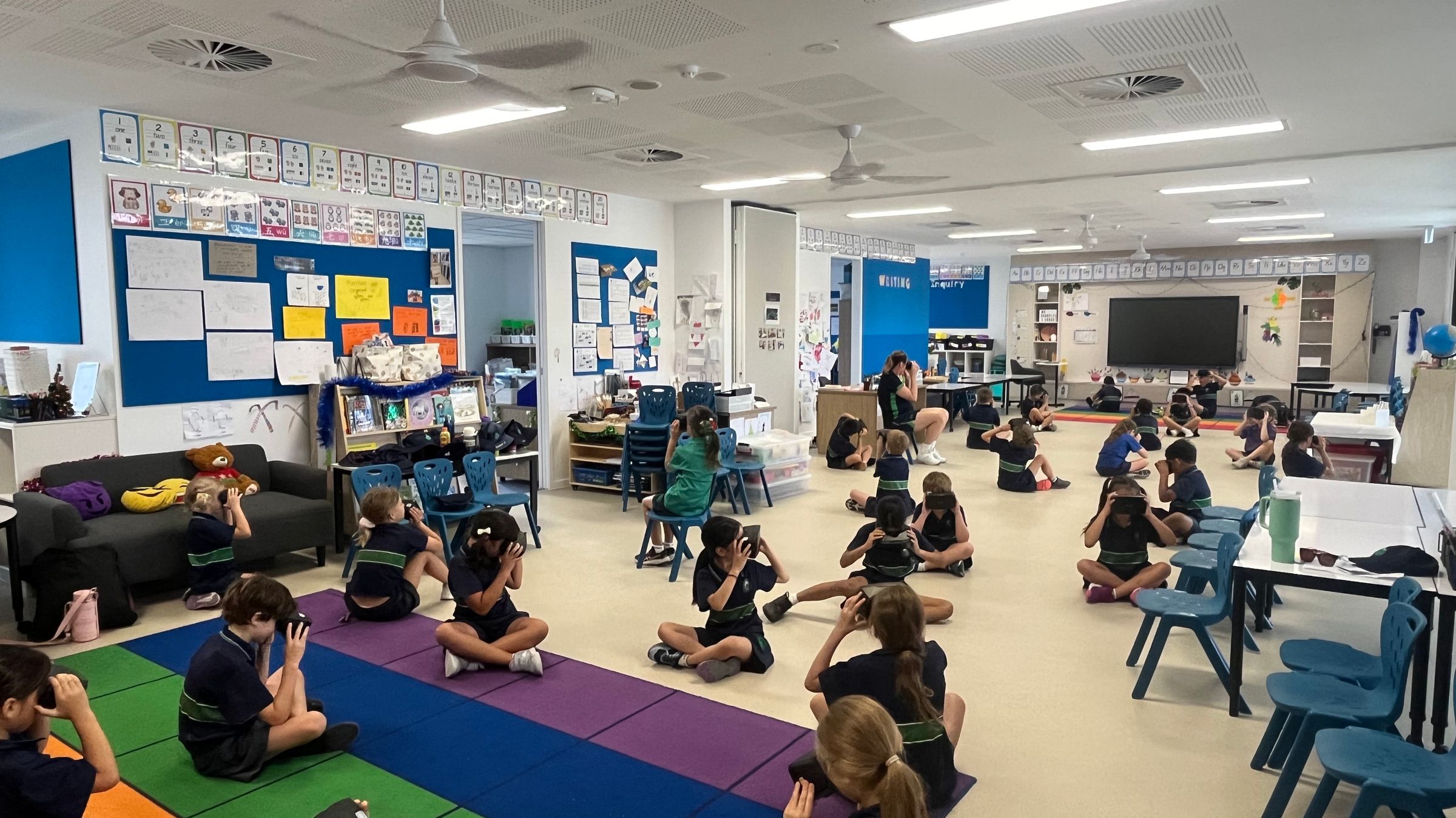 Students spent the morning rotating around four incursions: they were taught how to throw boomerangs at an Indigenous workshop, built teamwork skills during Gecko sports bootcamp, applied their creative skills building clay artefacts, and were taken to outer space during a captivating VR session.