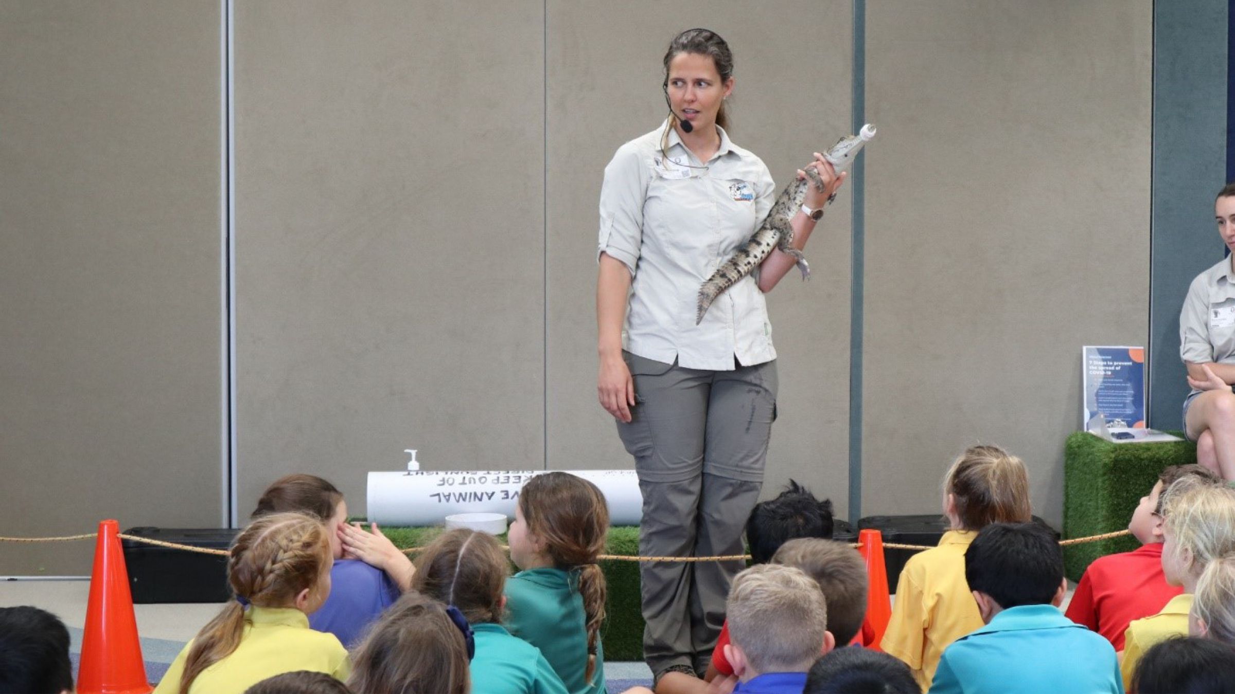 After a delicious BBQ lunch, up next was a spectacular reptile show from Sarah Jane (True Blue Reptiles). We listened to Sarah Jane’s informative chat all about classifying reptiles and the different types we can find in Australia, students were then able to touch a crocodile and a snake.