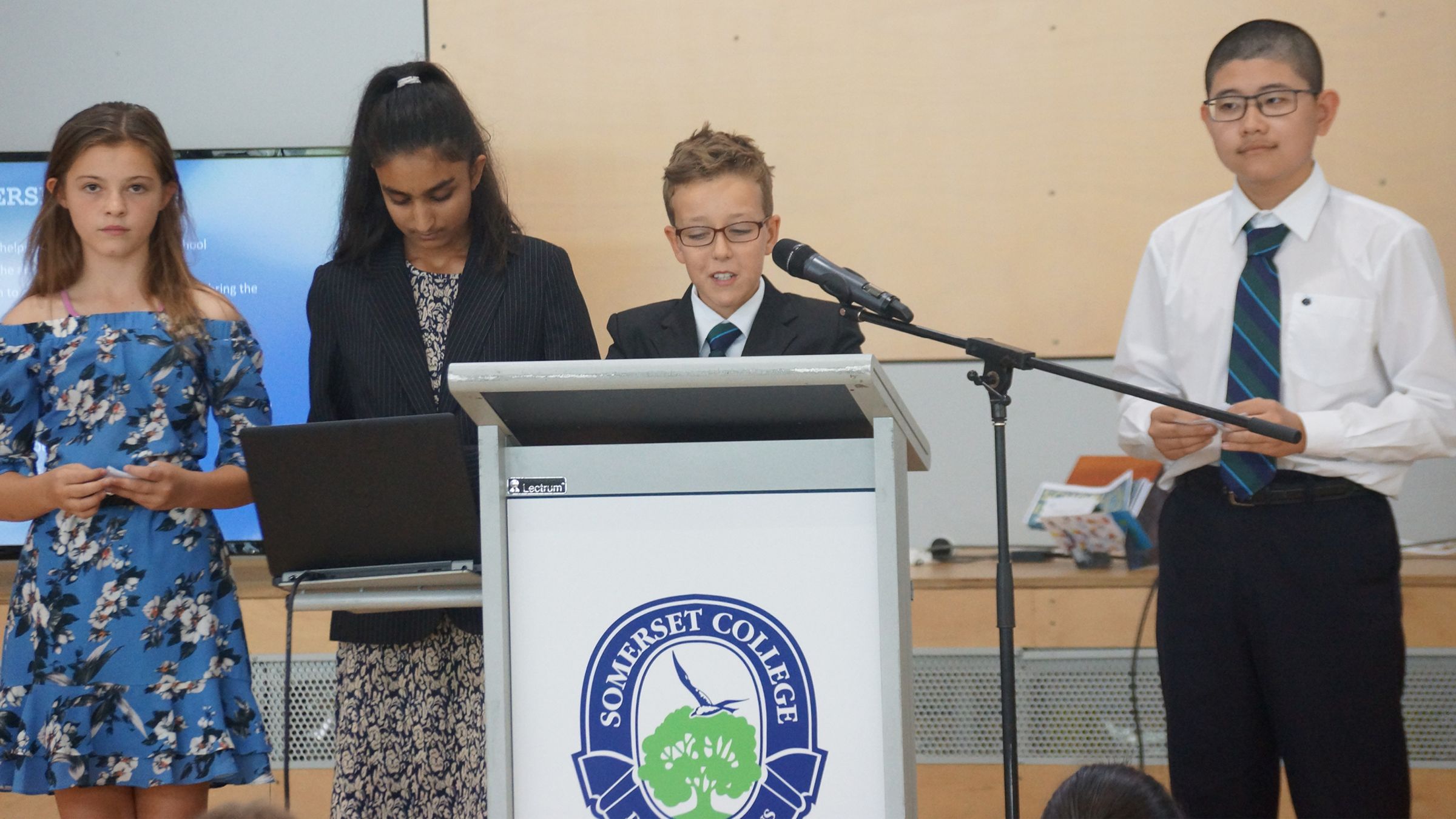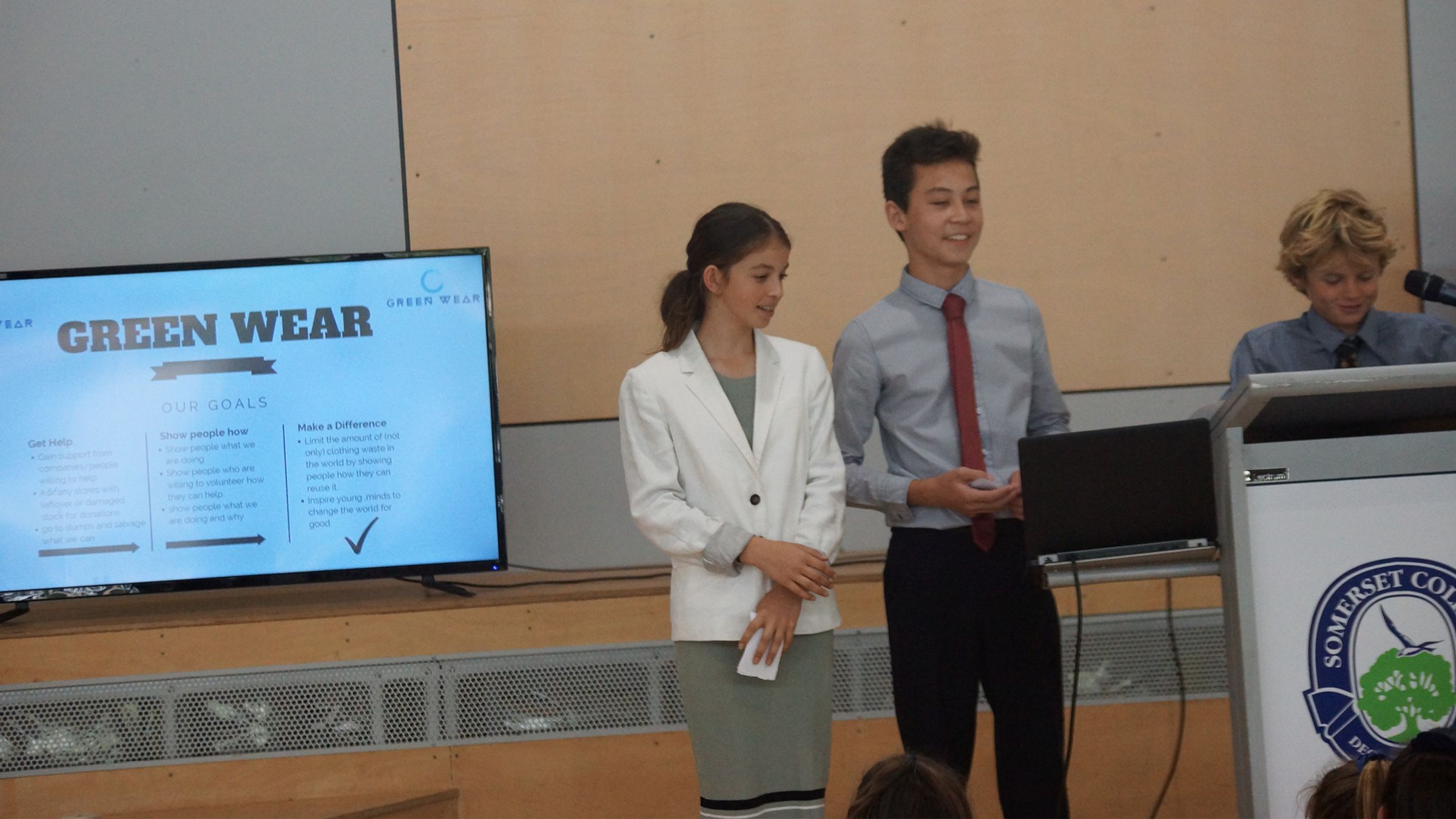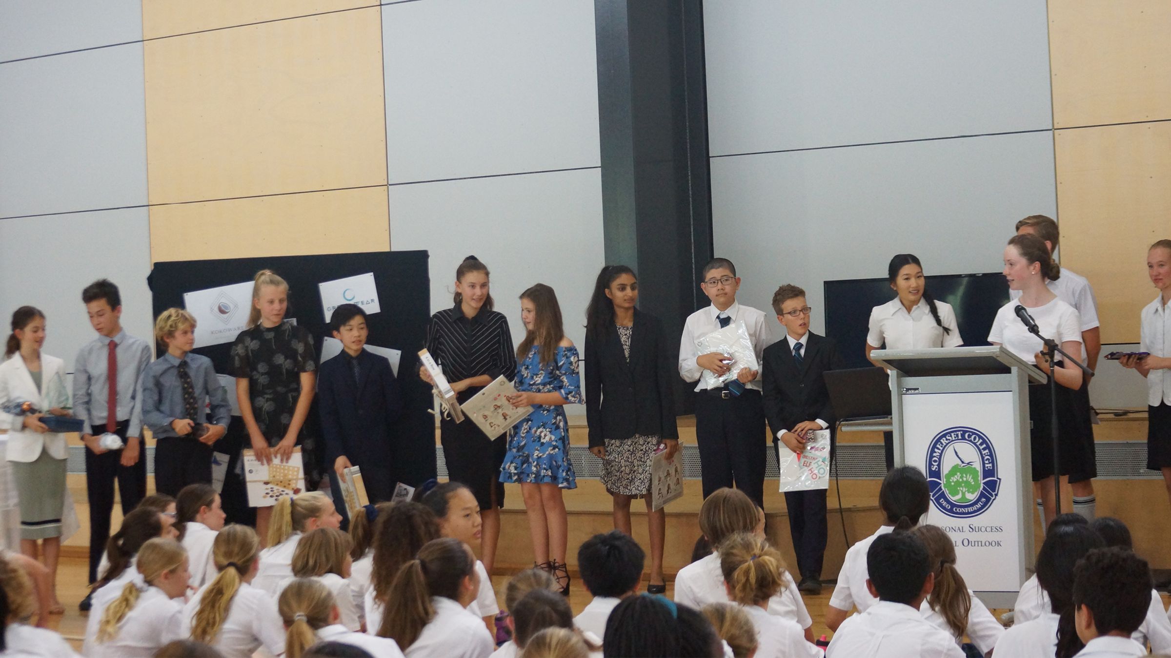 In teams of mainly three, they had to produce four to six slides outlining their company’s product and policies, and present it to the judges. Heats were held to choose one winner in each Year 7 Class, who would then progress to the Grand Final. Our guest judges were Year 11 Business Studies students, who had the very hard task of choosing not only the heat winners but also first, second and third place winners in the Grand Final.