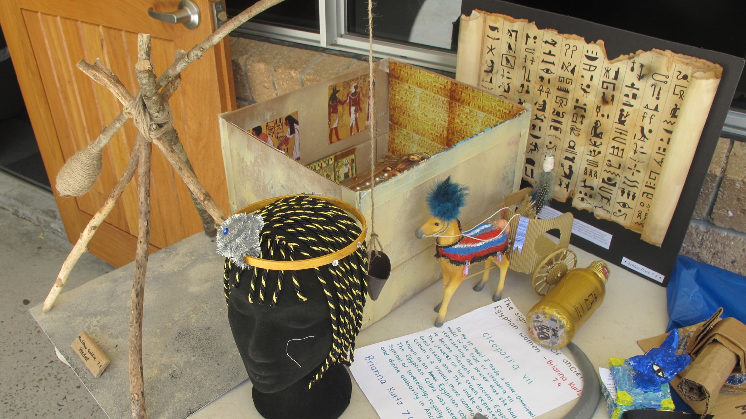 The Year 7 area was transformed into an Egyptian Arena for students to immerse in the culture. Some were dressed in Ancient Egyptian clothing taking the class back to ancient times before presenting their artefacts to their peers.